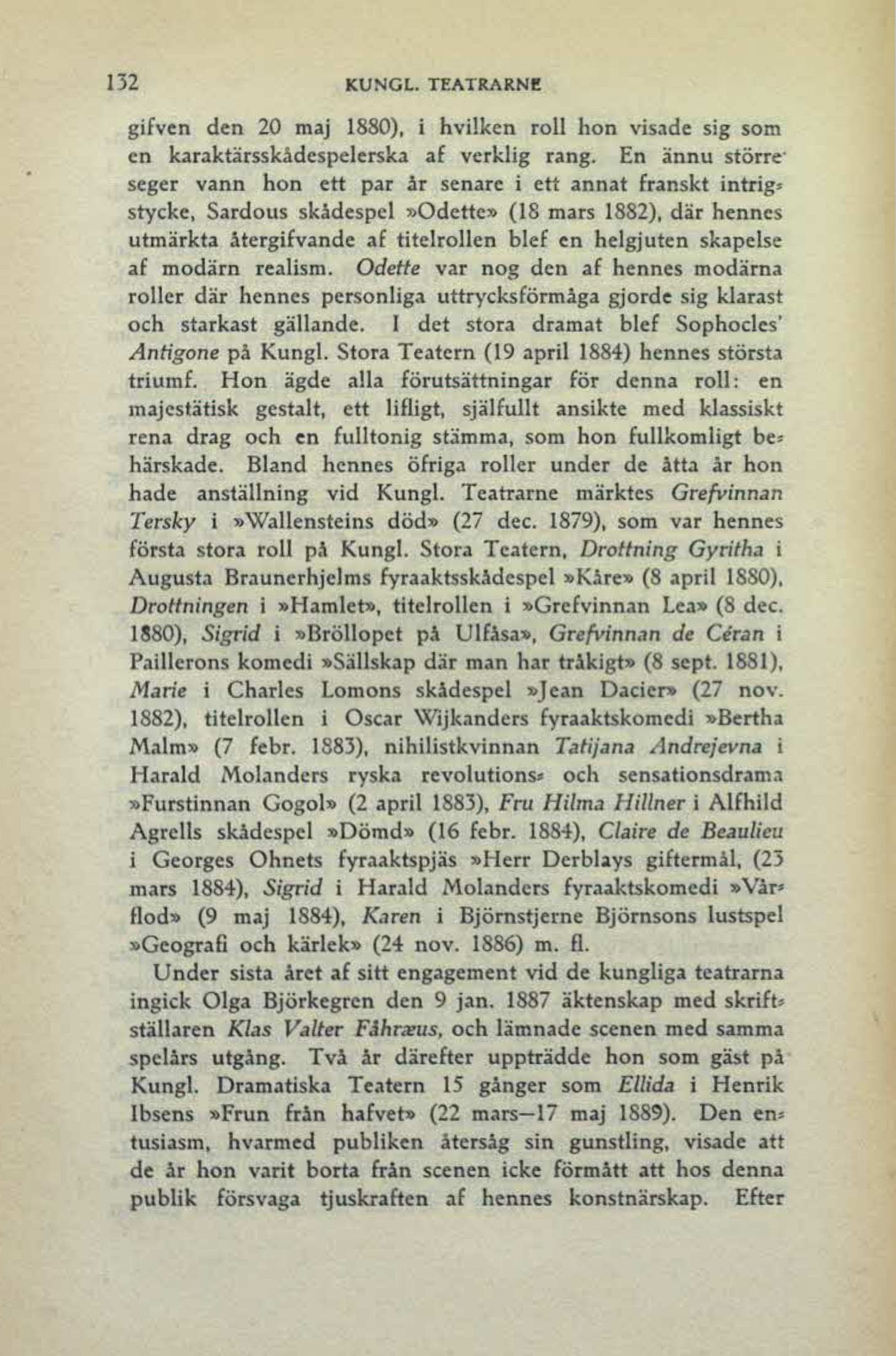 Antigone på Kungl. Stora Teatern (19 april 1884) hennes största