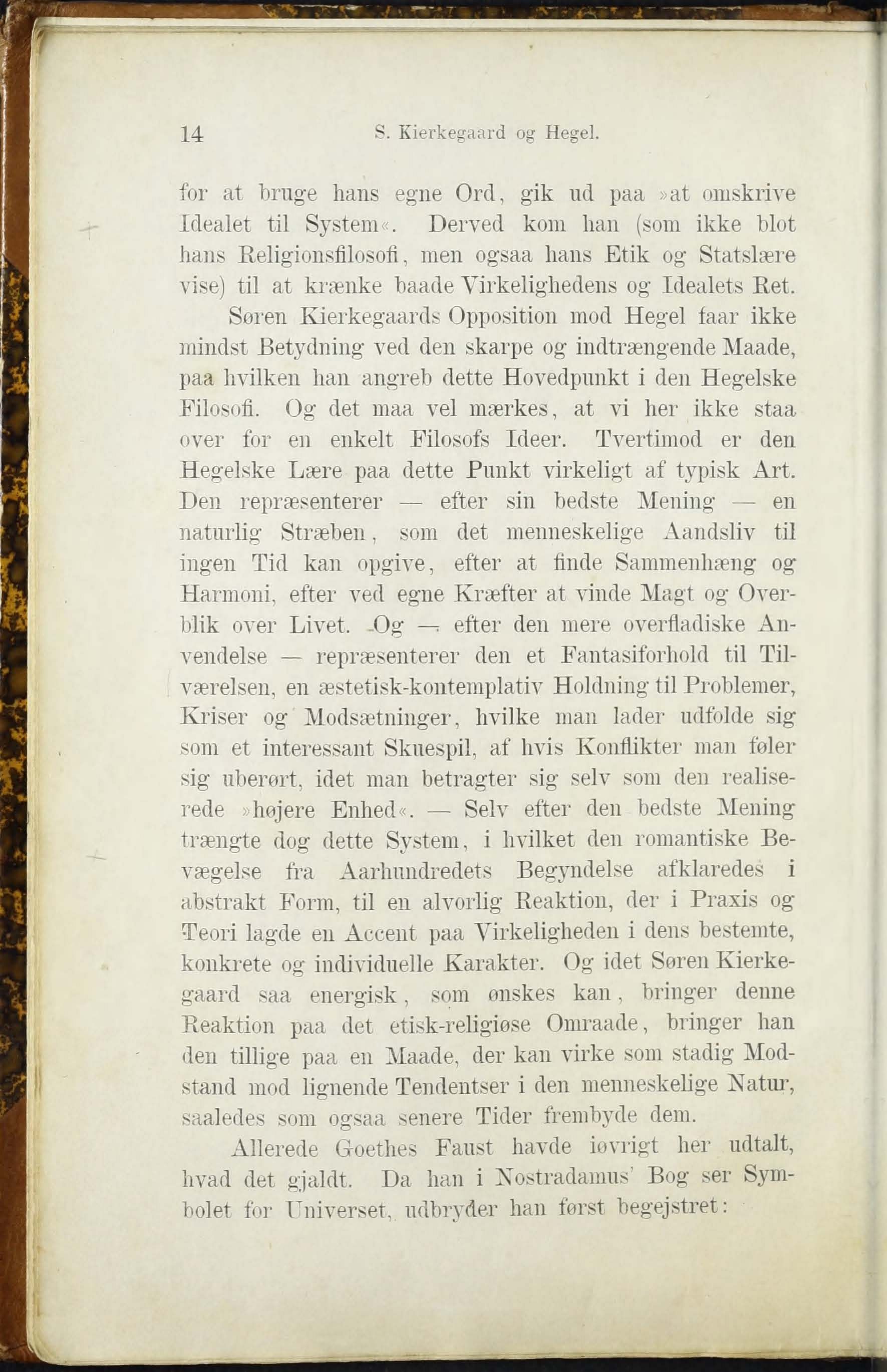 Søren Kierkegaards Opposition mod Hegel faar ikke