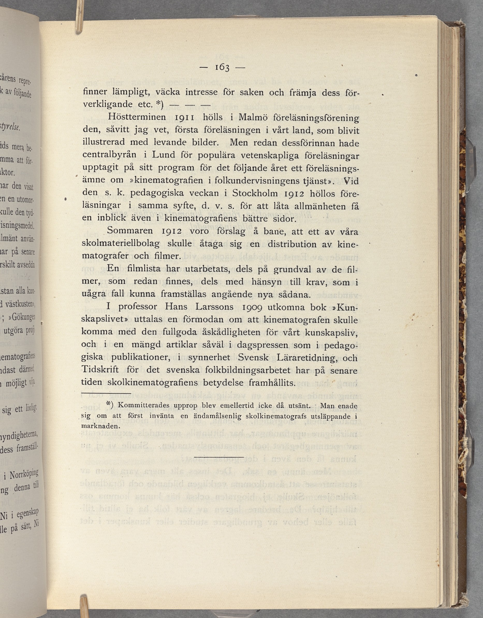 föreläsningsämne om »kinematografien i folkundervisningens tjänst». Vid