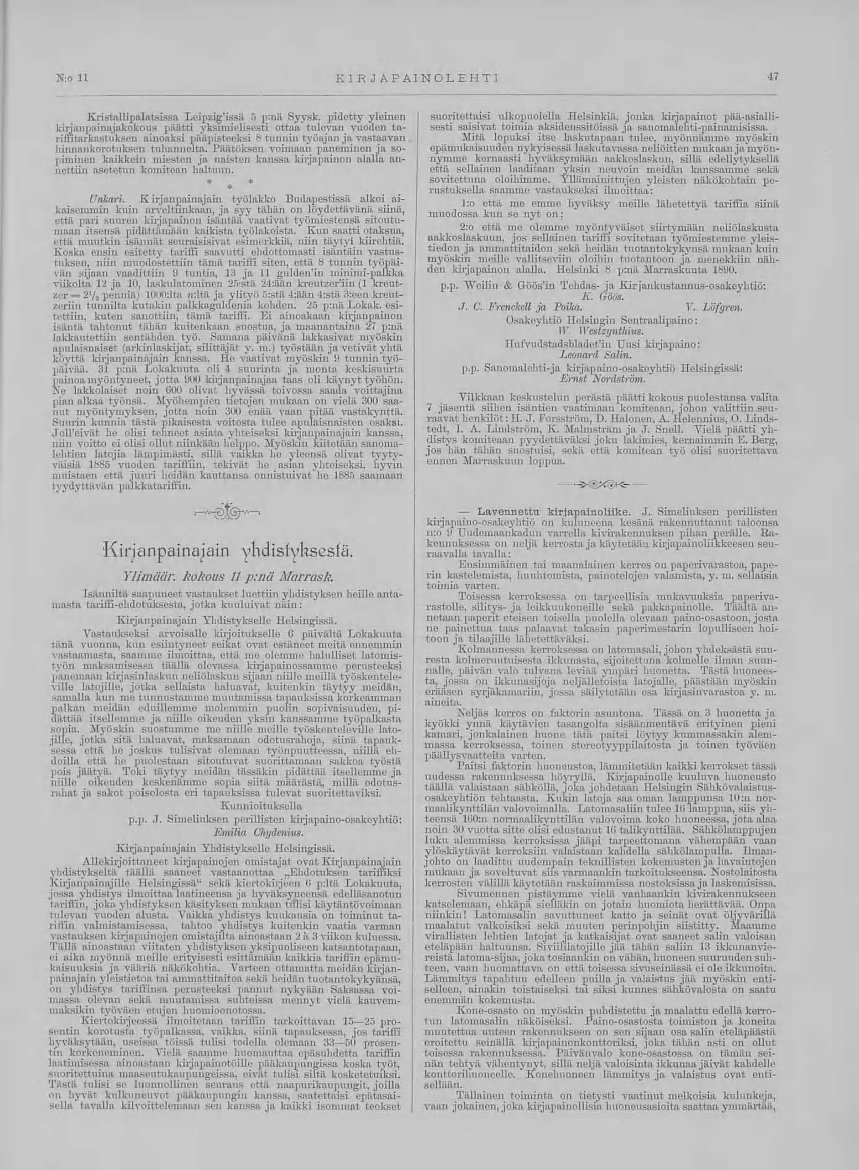 Kirjanpainajain Yhdistykselle Helsingissä.