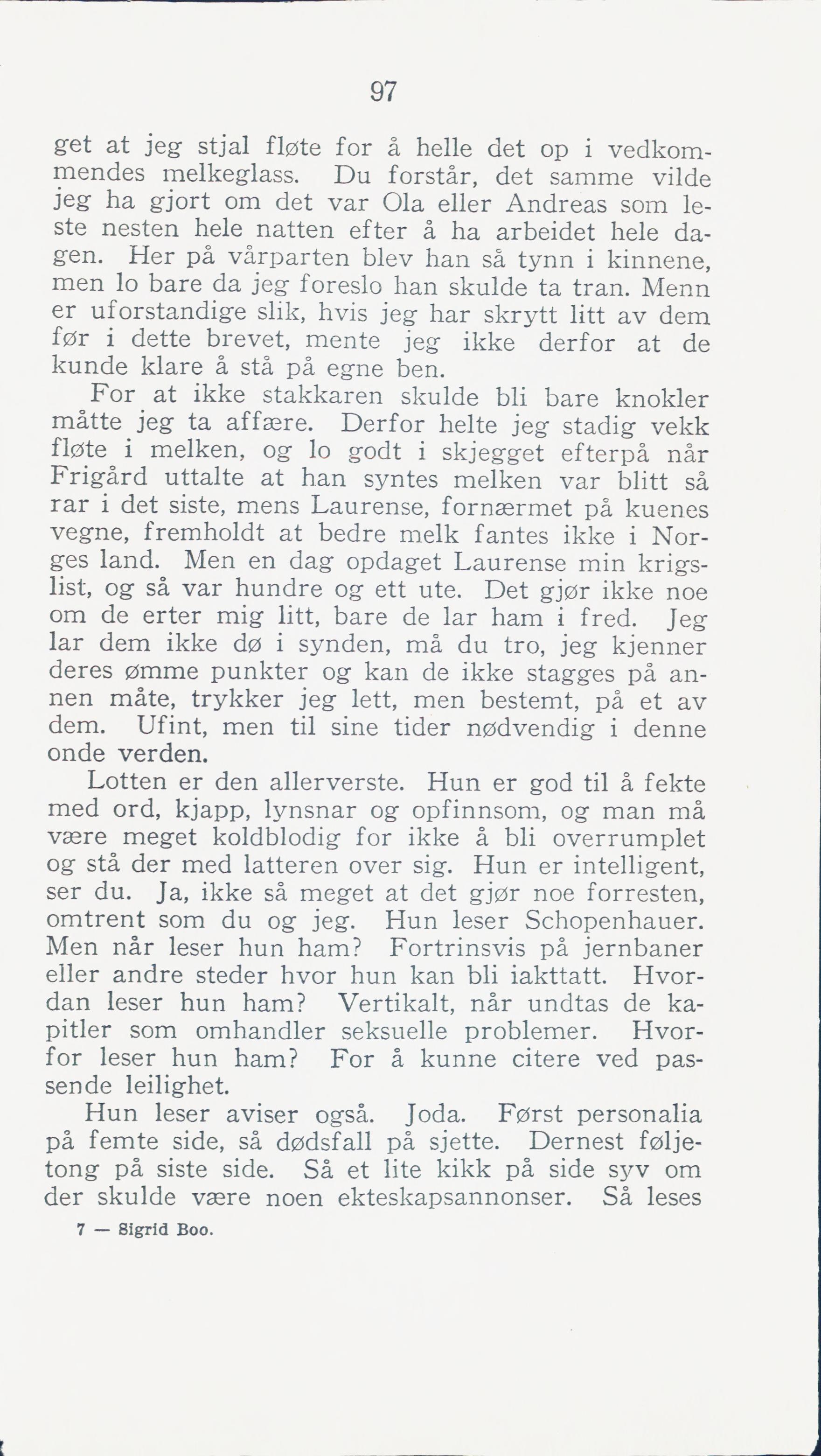 omtrent som du og jeg. Hun leser Schopenhauer.