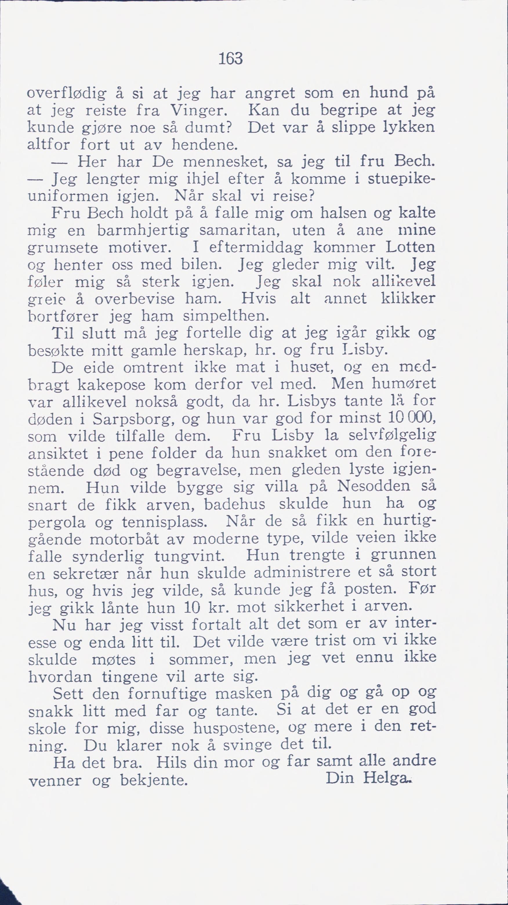 at jeg reiste fra Vinger. Kan du begripe at jeg