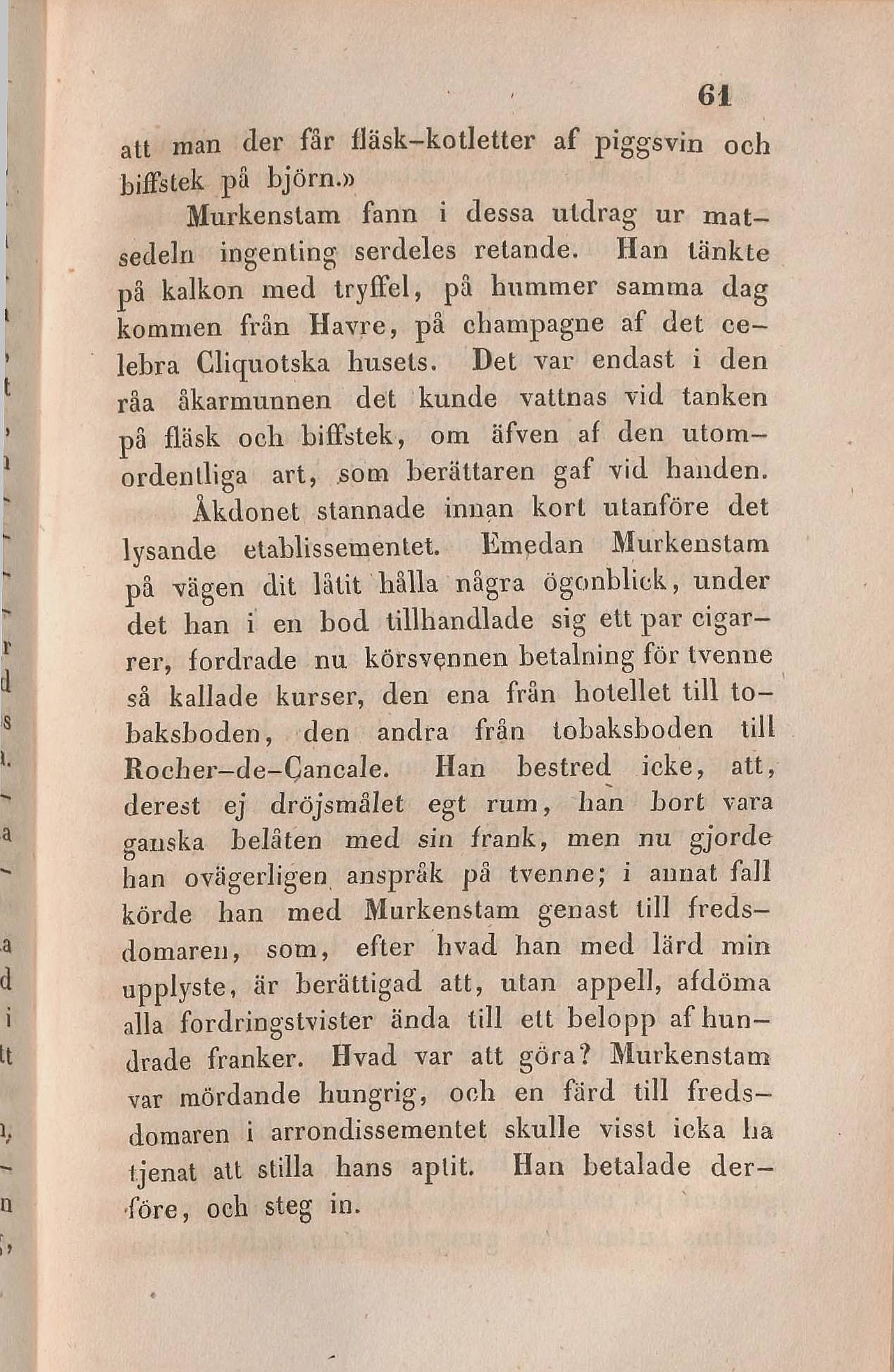tjenat att stilla hans aptit. Han betalade