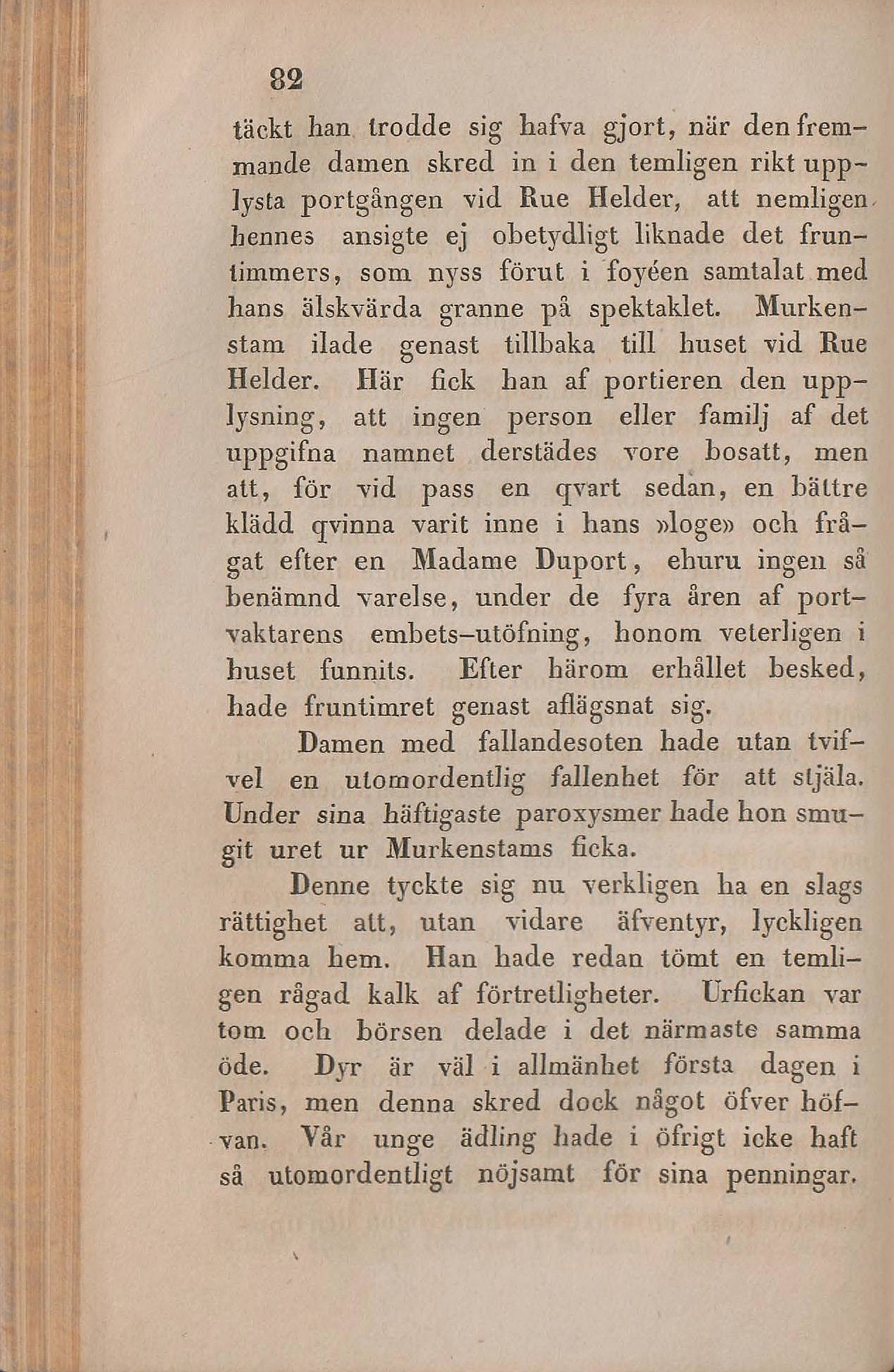 Murkenstam ilade genast tillbaka till huset vid Rue