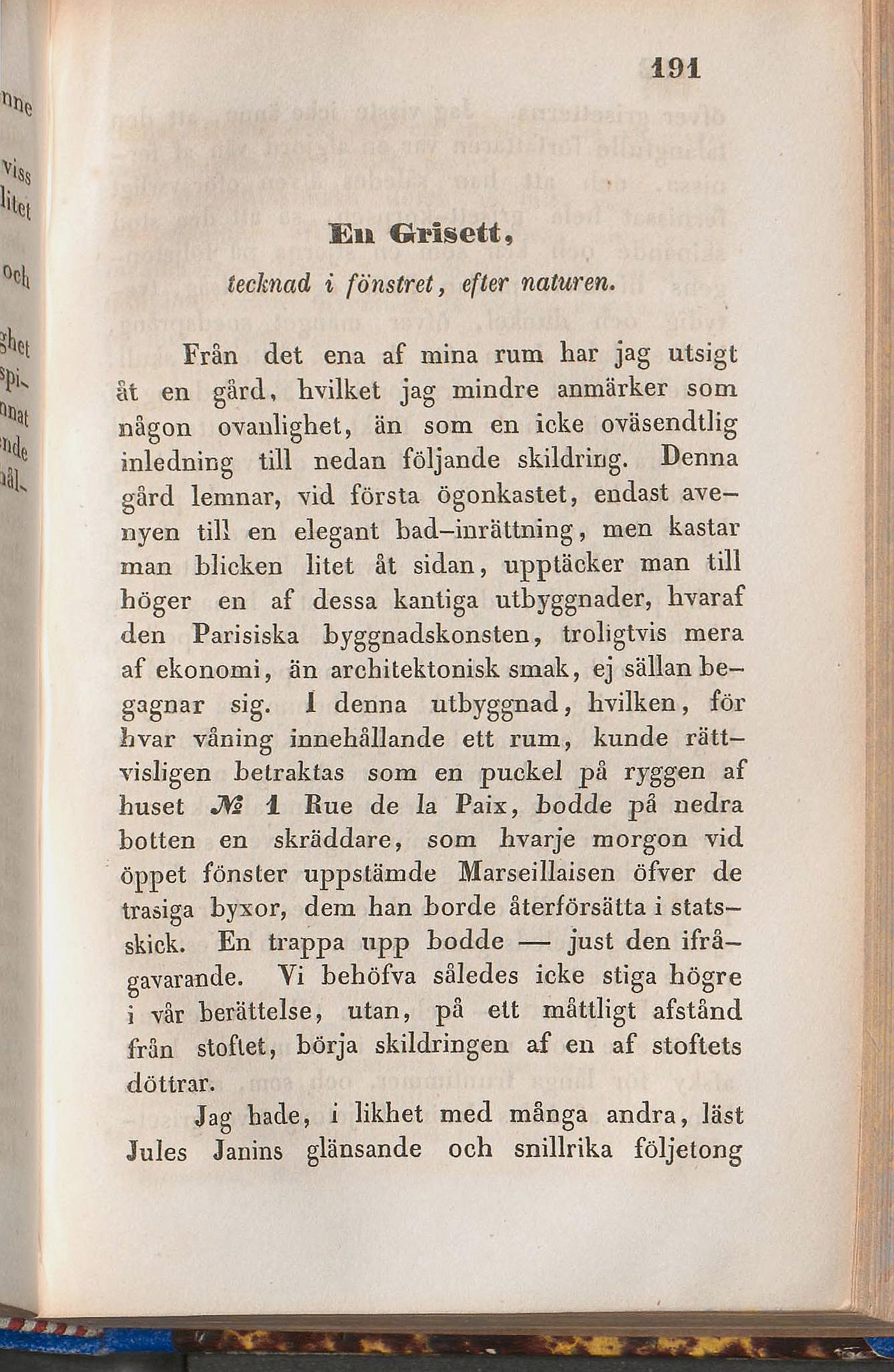 - Eu Grisett, tecknad i fönstret, efter naturen.