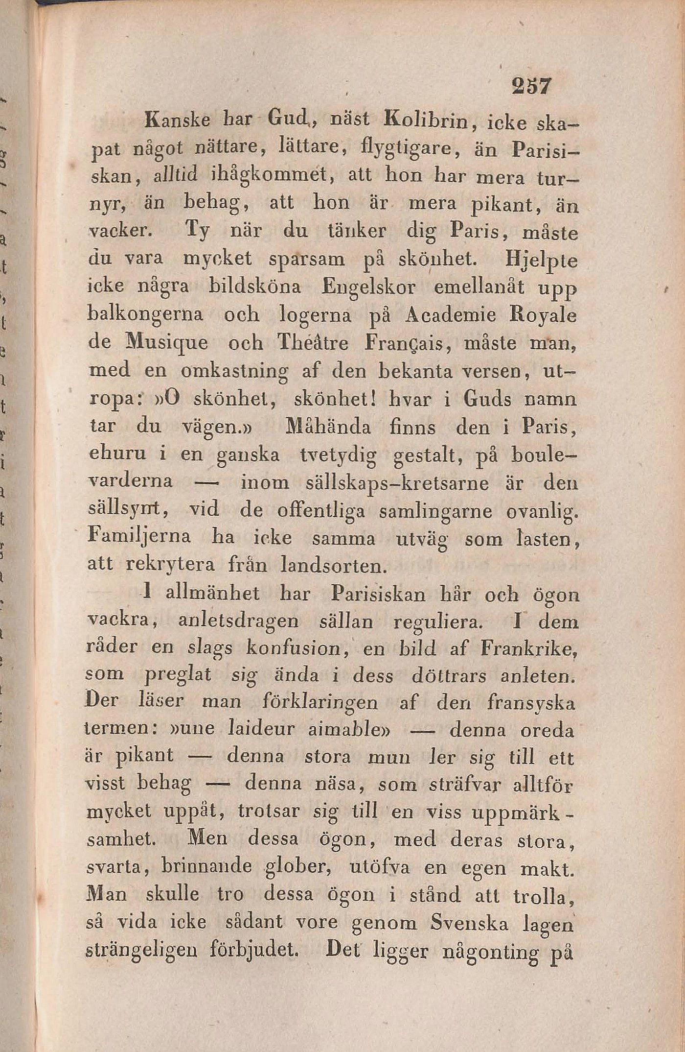 Parisiskan, alltid ihågkommet, att bon har mera