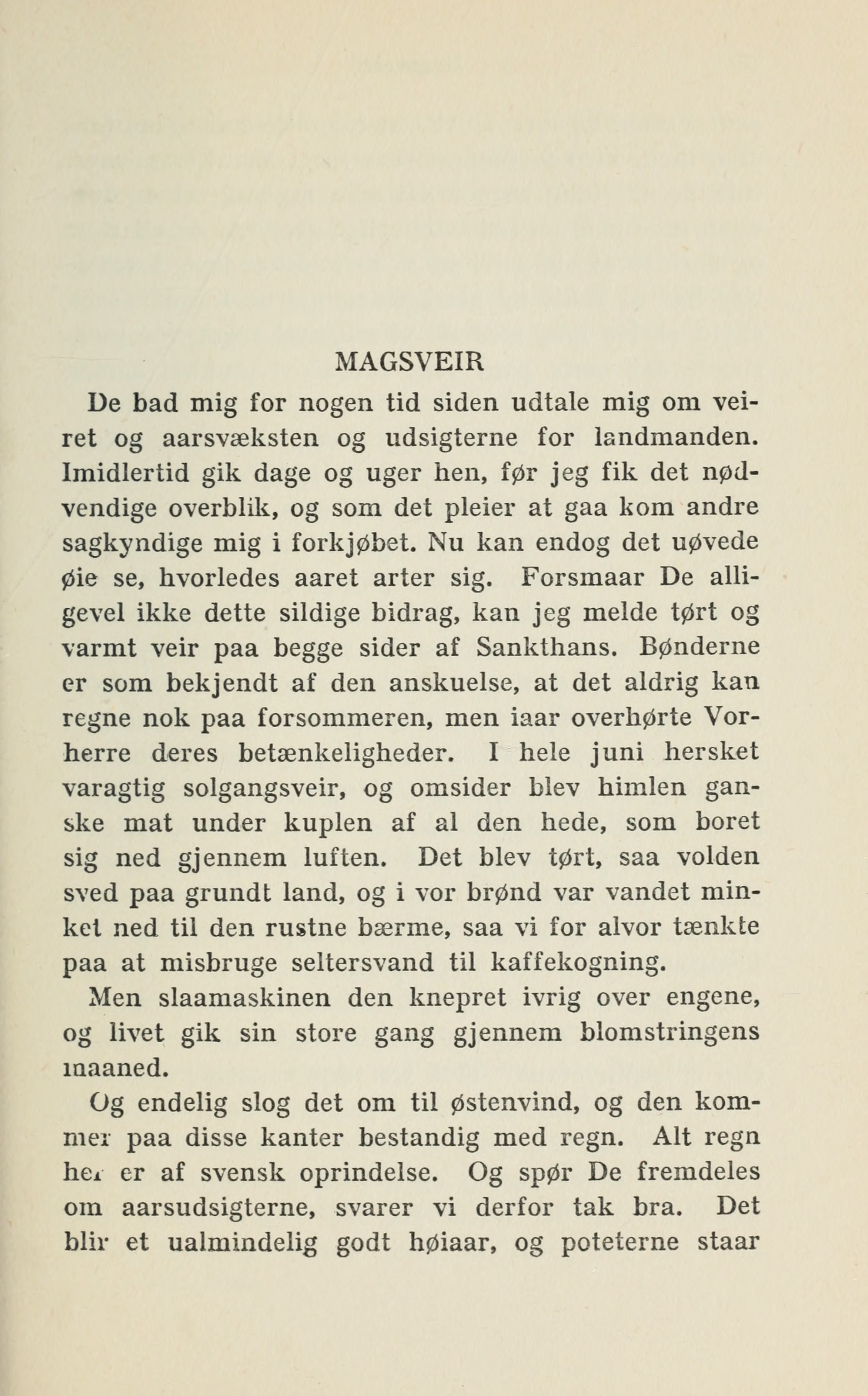 varmt veir paa begge sider af Sankthans. Bønderne
