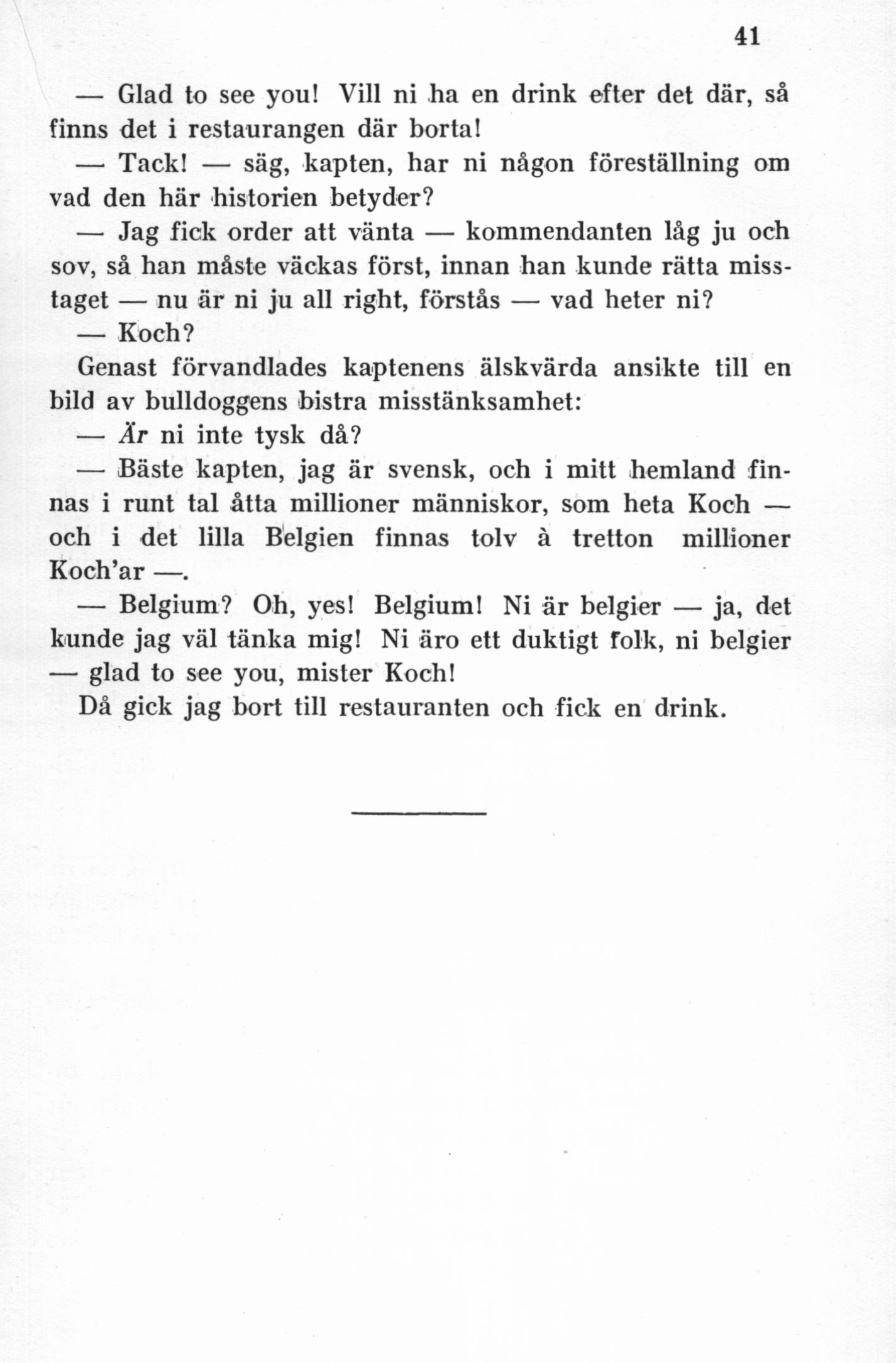 [-41-]{++} — Glad to see you! Vill ni ha en drink efter det där, så