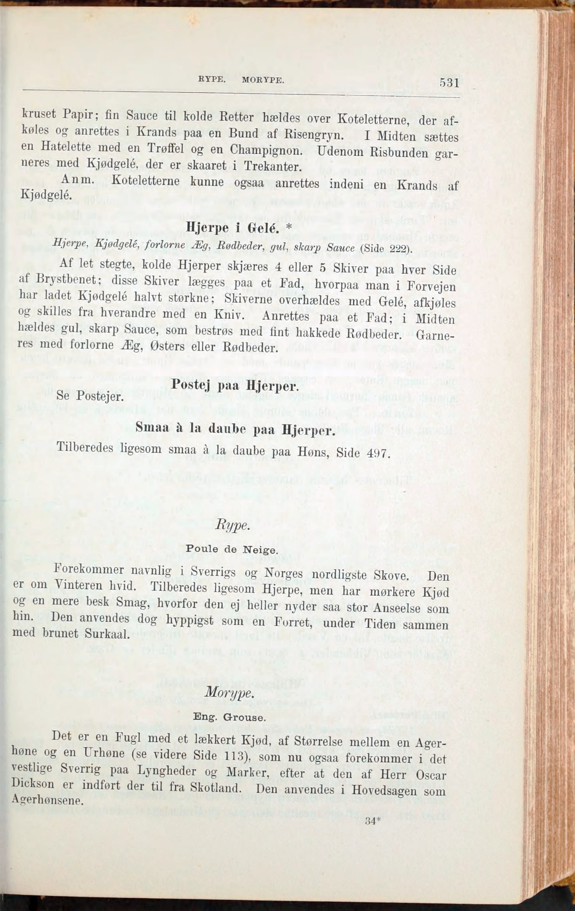 Full resolution (JPEG) - On this page / på denna sida - Vildt - Hjerpe - Kolde Retter af Hjerpe - Hjerpekoteletter - Hjerpe i Gelé - Postej paa Hjerper - Smaa à la daube paa Hjerper - Rype - Morype