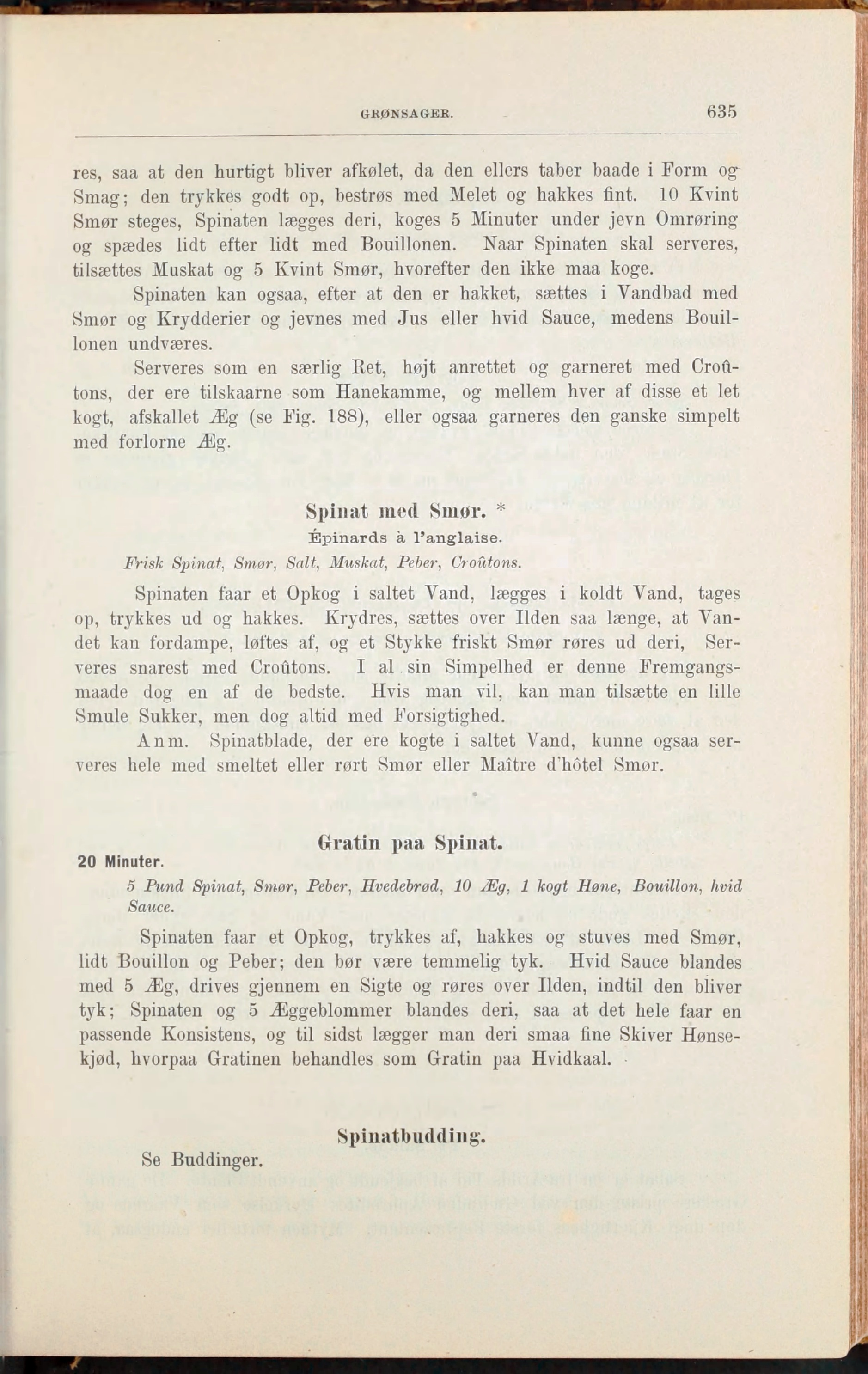 Full resolution (JPEG) - On this page / på denna sida - Grønsager - Spinat - Spinat med Bouillon - Spinat med Smør - Gratin paa Spinat - Spinatbudding