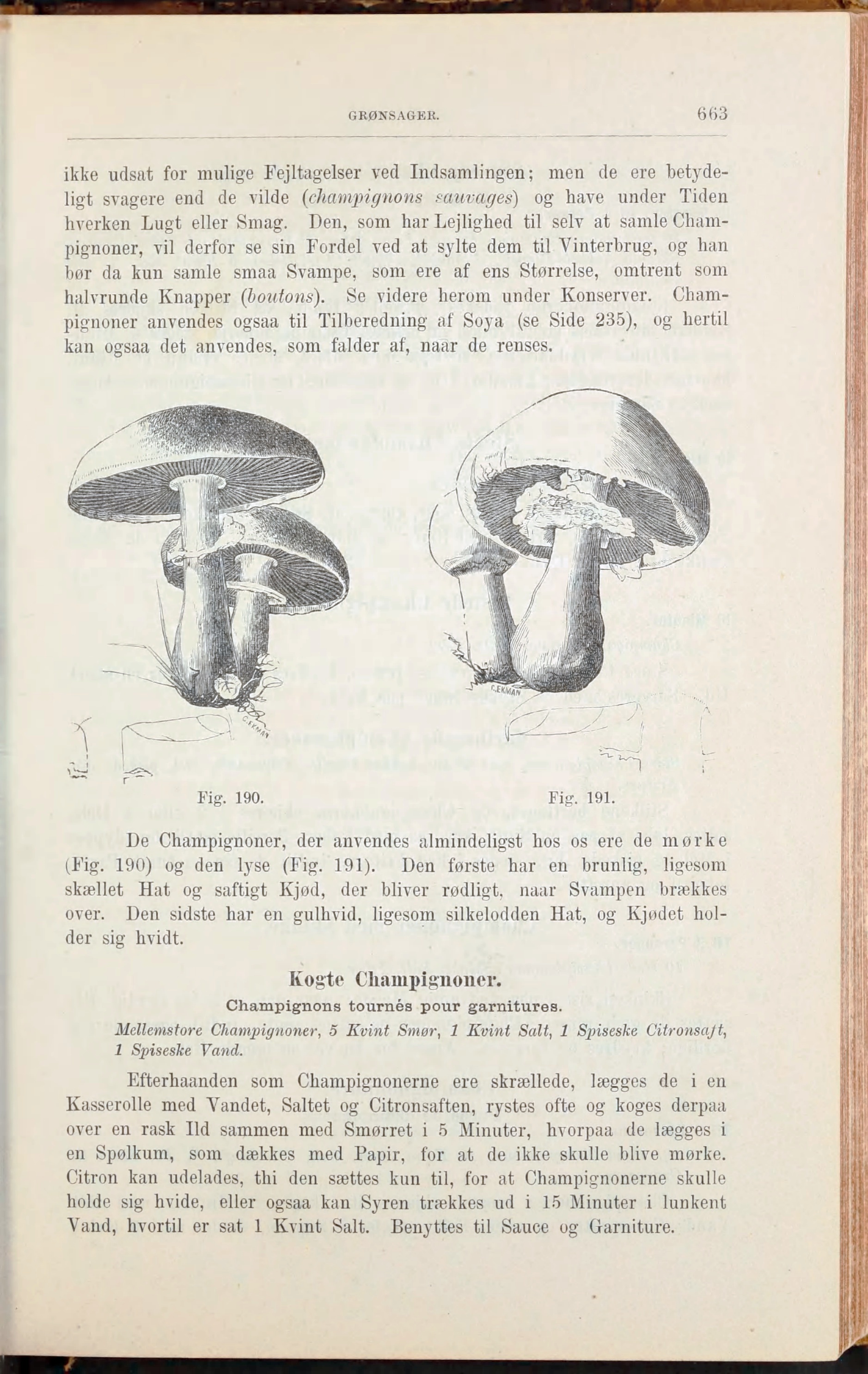 ligt svagere end de vilde (champignons sauvages) og liave under Tiden