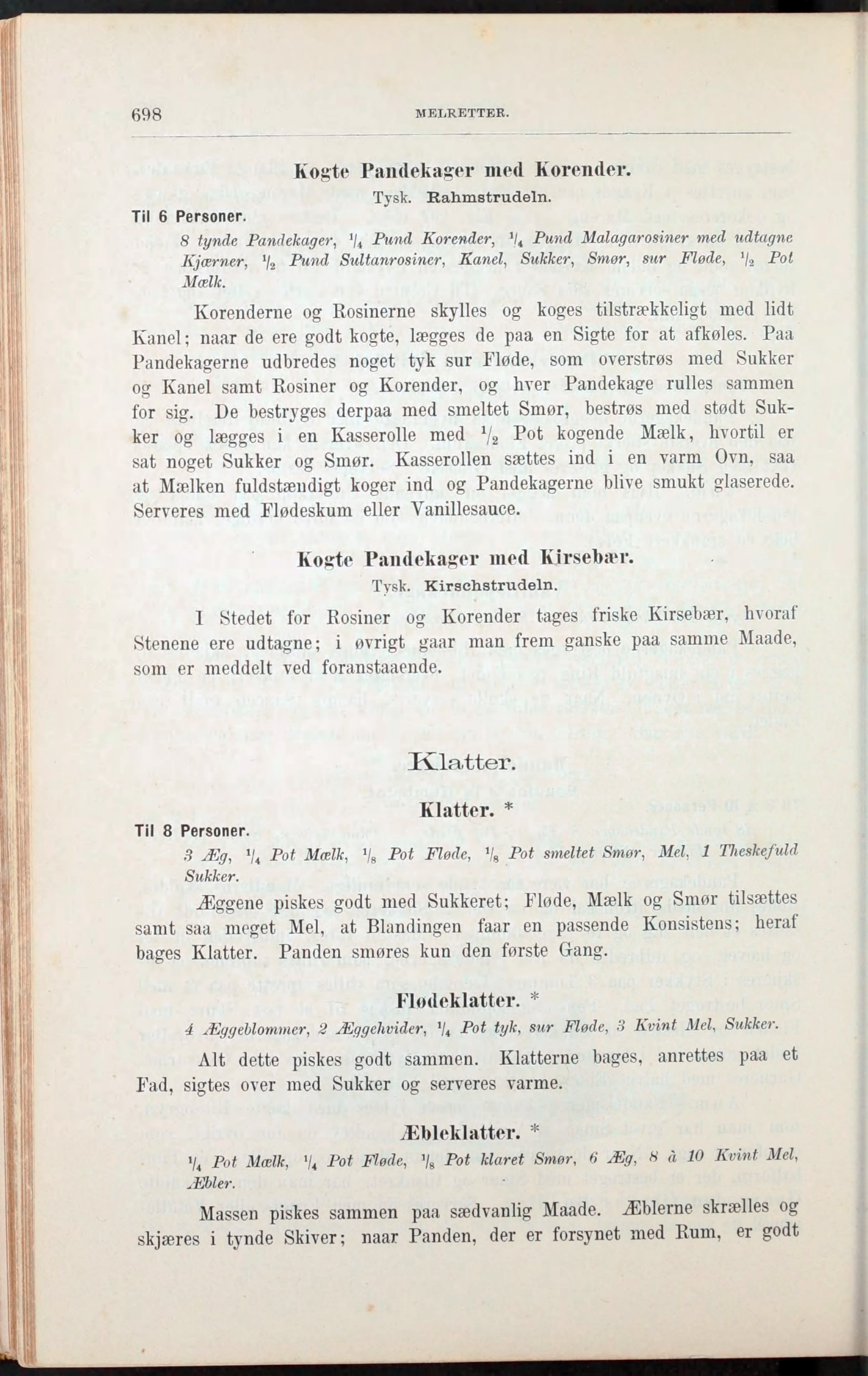 Full resolution (JPEG) - On this page / på denna sida - Æg-, Ost-, Mel- og Risengrynsretter - Melretter - Pandekager - Kogte Pandekager med Korender - Kogte Pandekager med Kirsebær - Klatter - Klatter - Flødeklatter - Æbleklatter