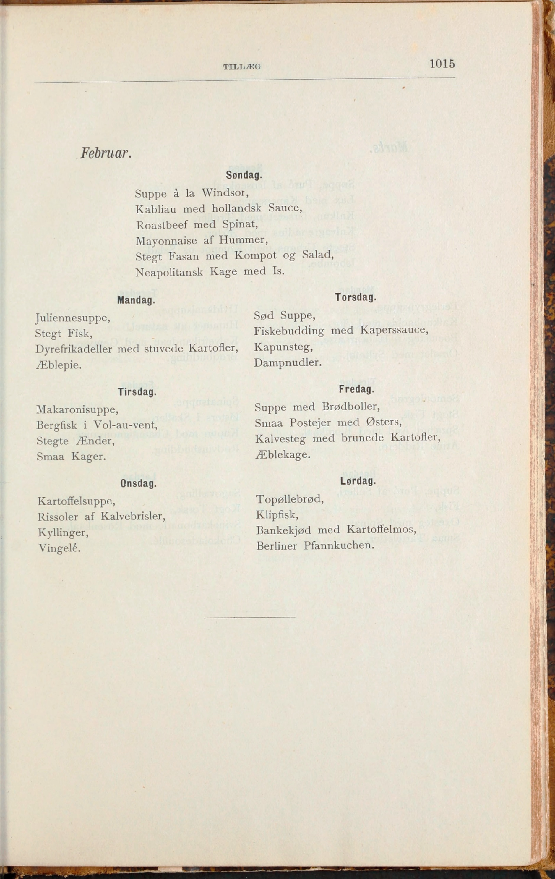 Full resolution (JPEG) - On this page / på denna sida - Tillæg. Spisesedler og en Del i Hovedværket ikke omtalte Retter. Ved P. J. Soyer - Spisesedler passende til Aarstiderne - Februar