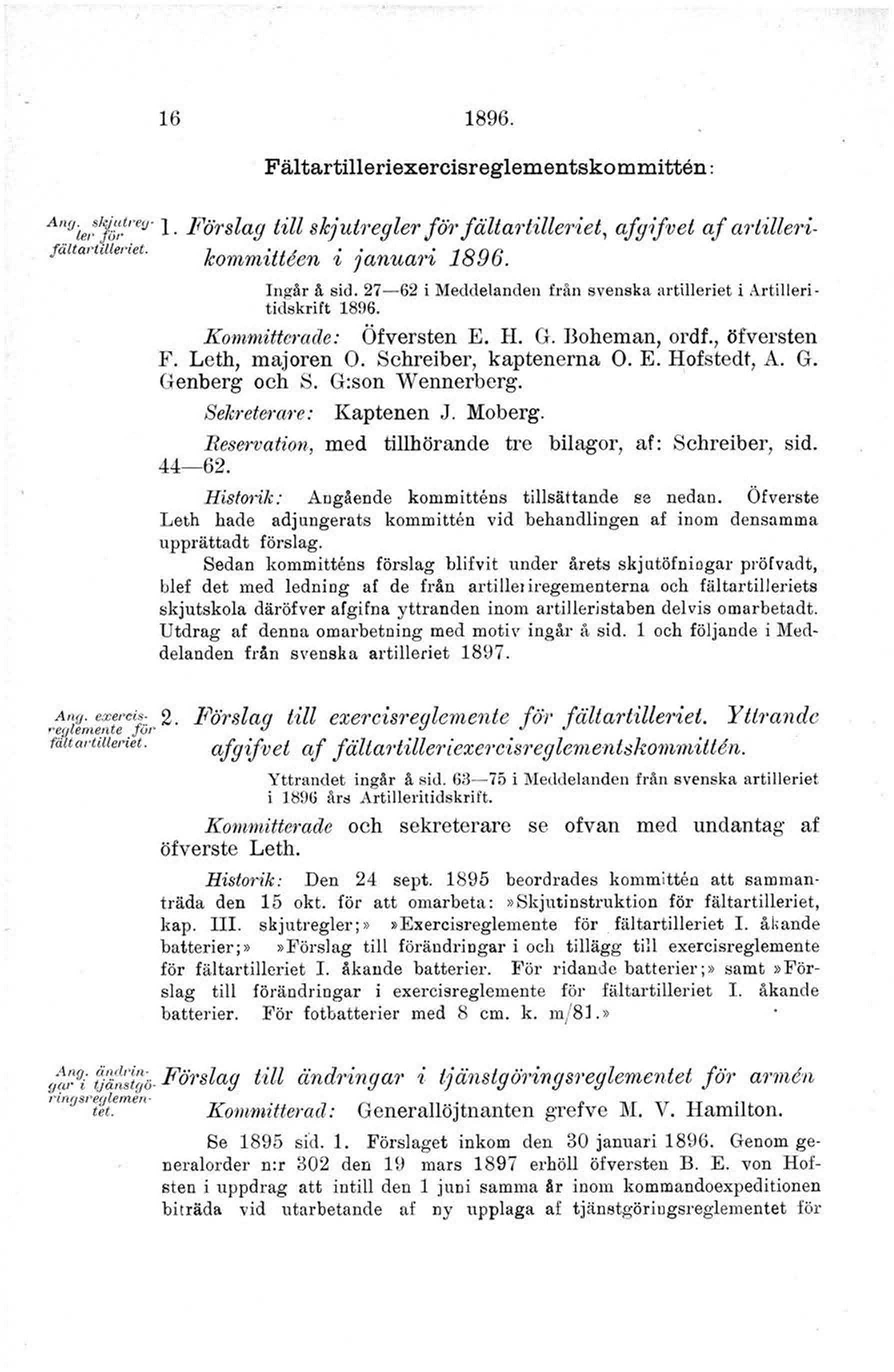 Kommitterade: Öfversten E. II. G. Boheman, ordf., öfversten