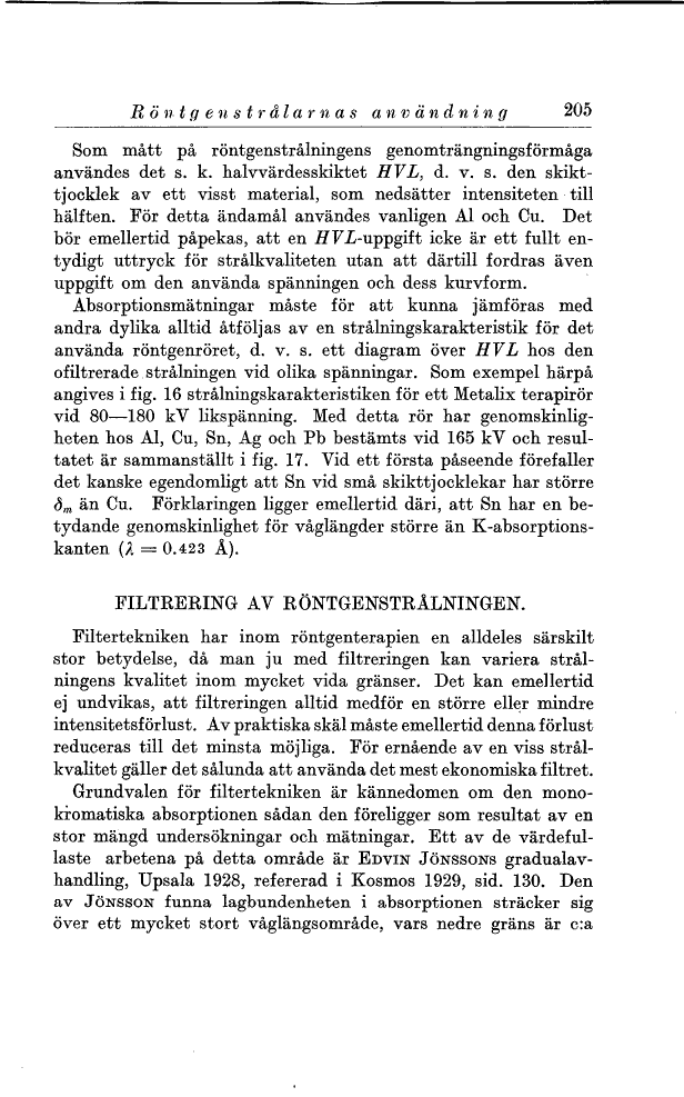FILTRERING AV RÖNTGENSTRÅLNINGEN.