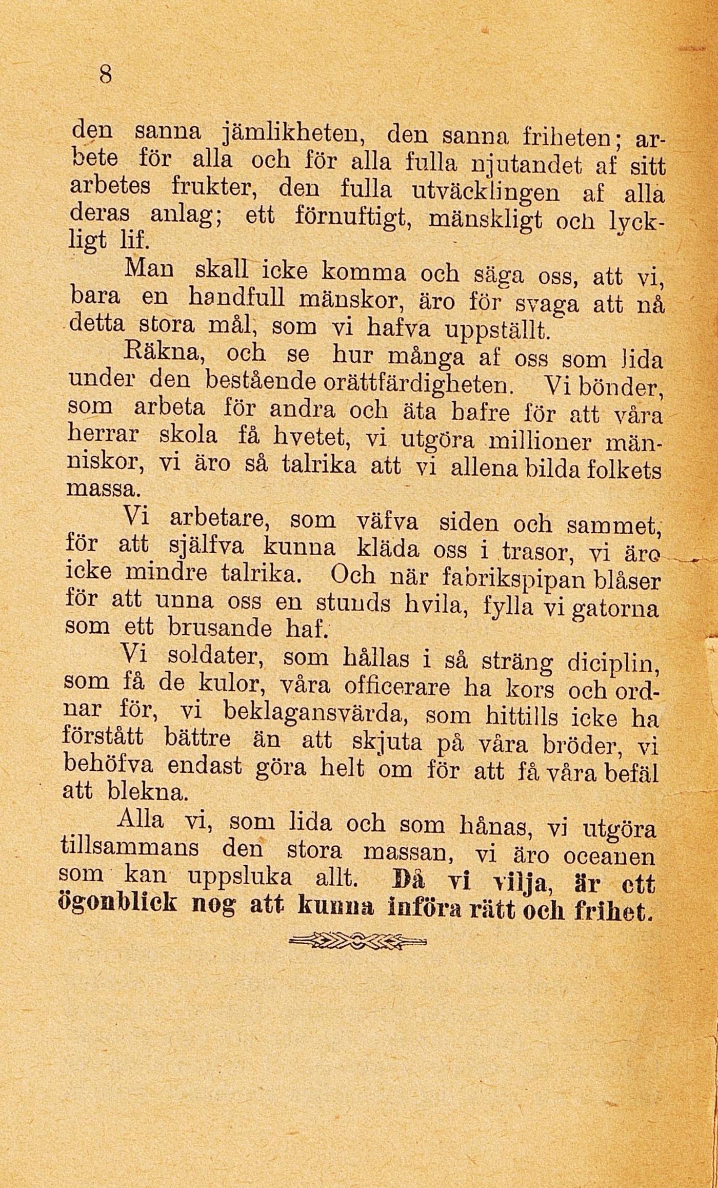 för att själfva kunna kläda oss i trasor, vi äro