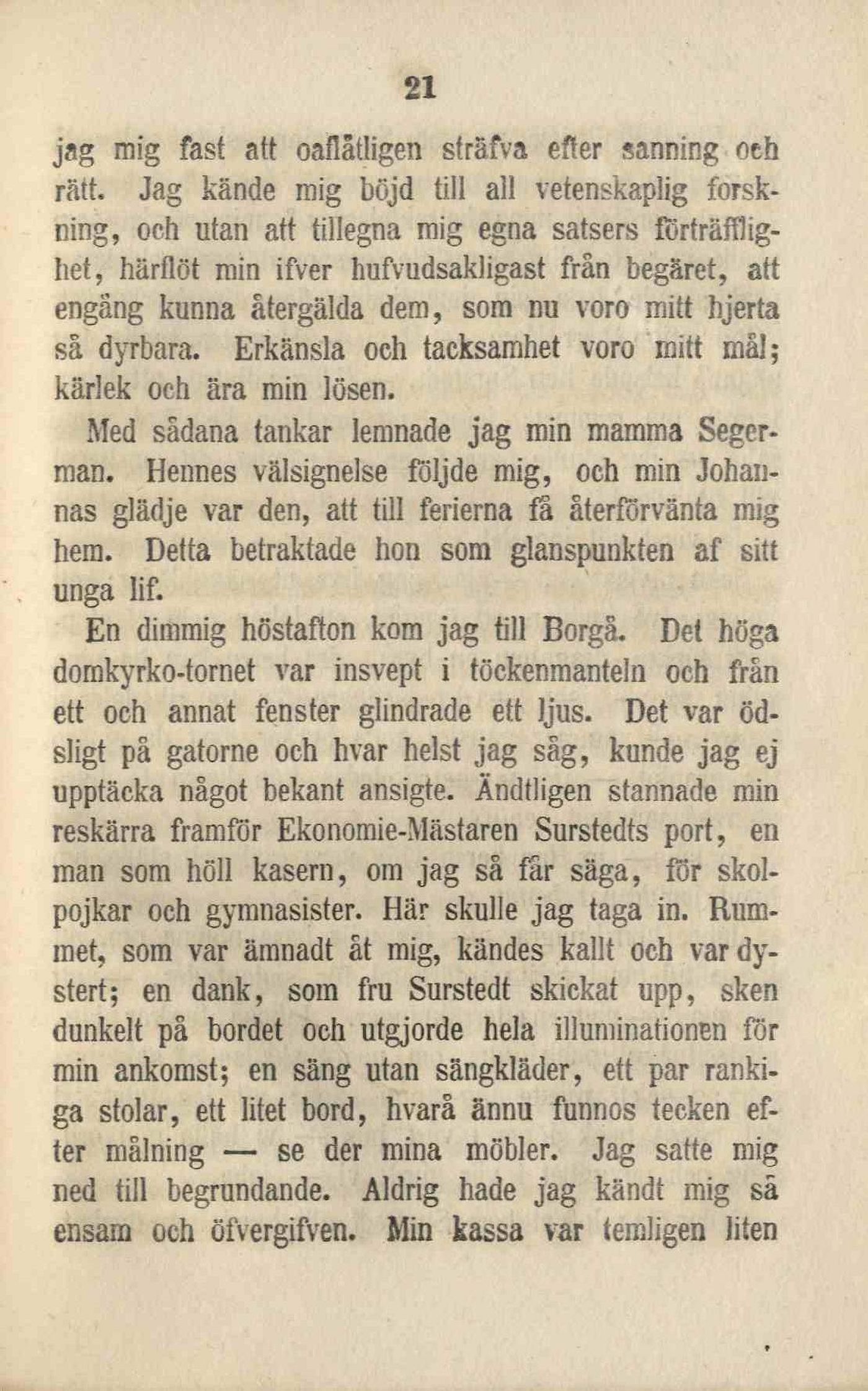 Med sådana tankar lemnade jag min mamma Segerman.