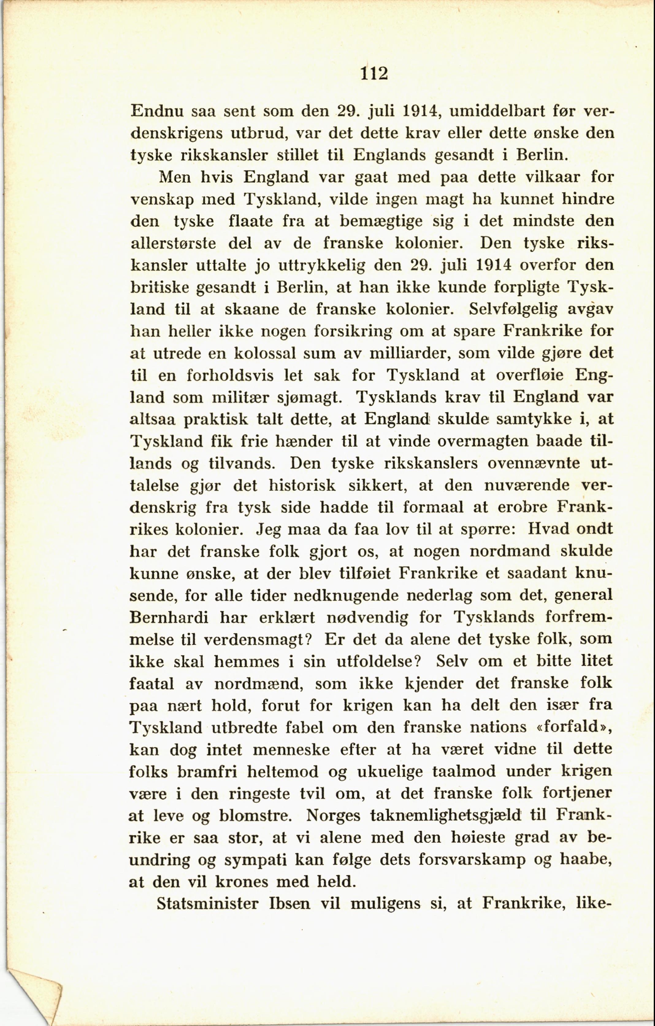 kansler uttalte jo uttrykkelig den 29. juli 1914 overfor den
