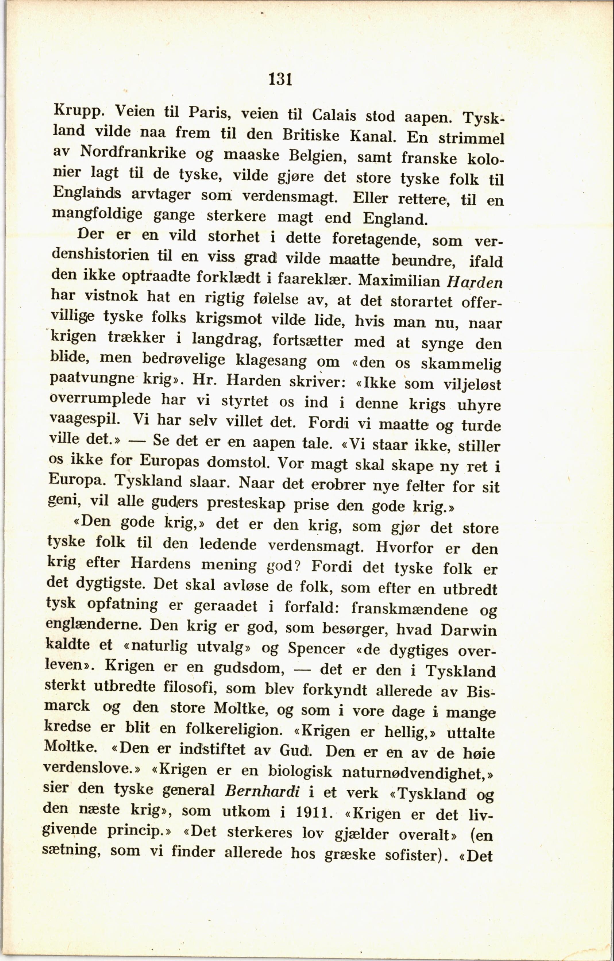 paatvungne krig». Hr. Harden skriver: «Ikke som viljeløst