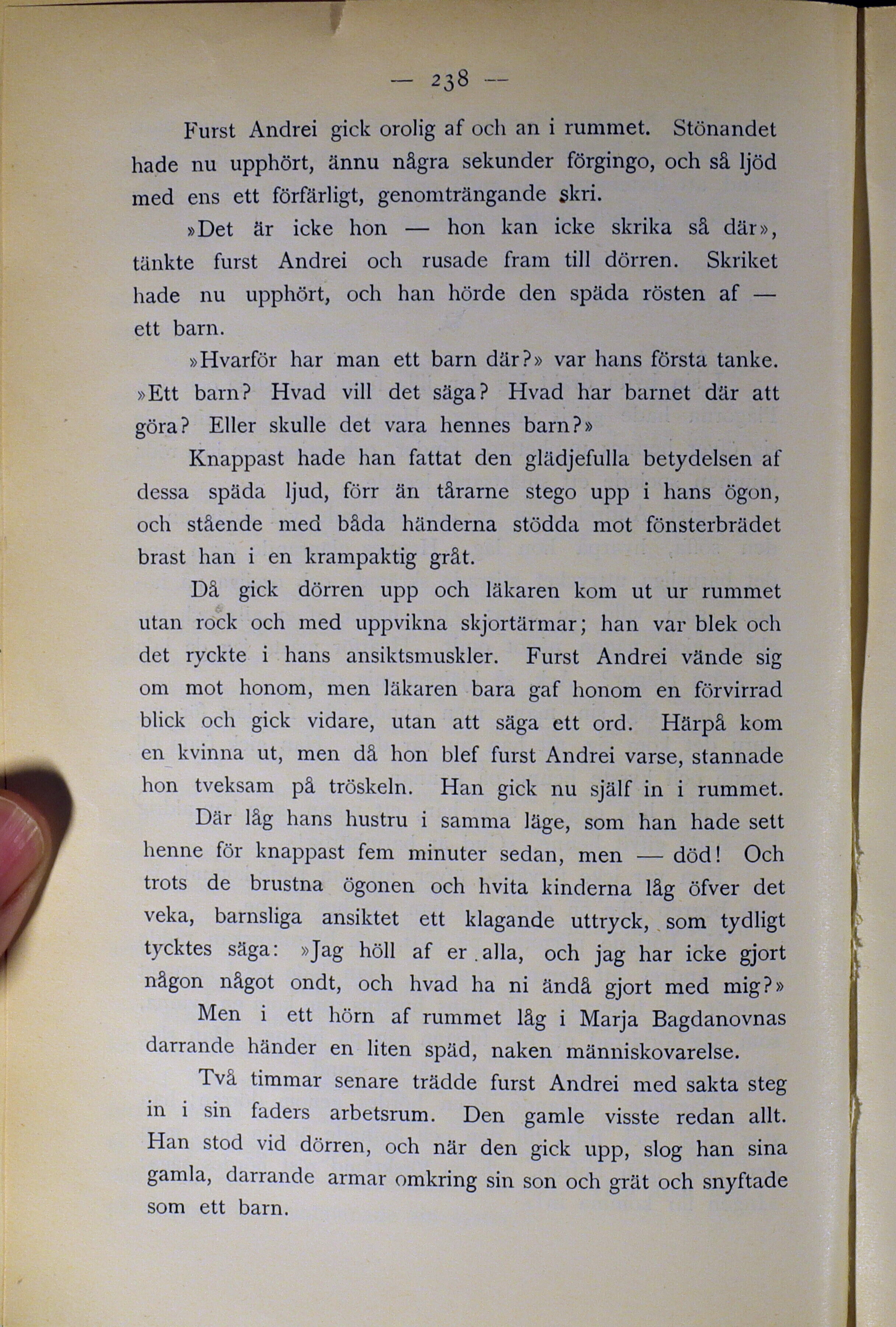 tänkte furst Andrei och rusade fram till dörren. Skriket
