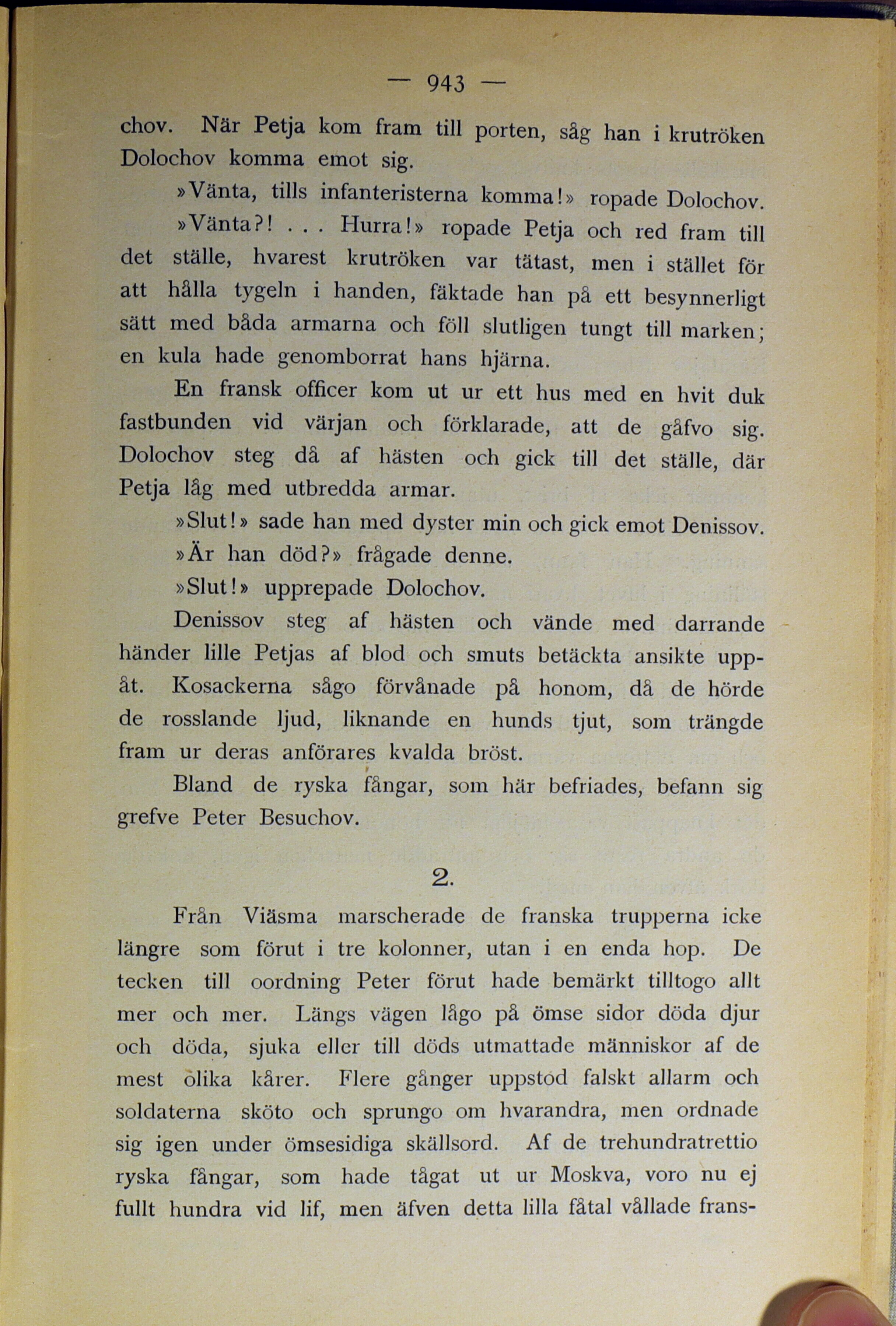 »Slut!» sade han med dyster min och gick emot Denissov.