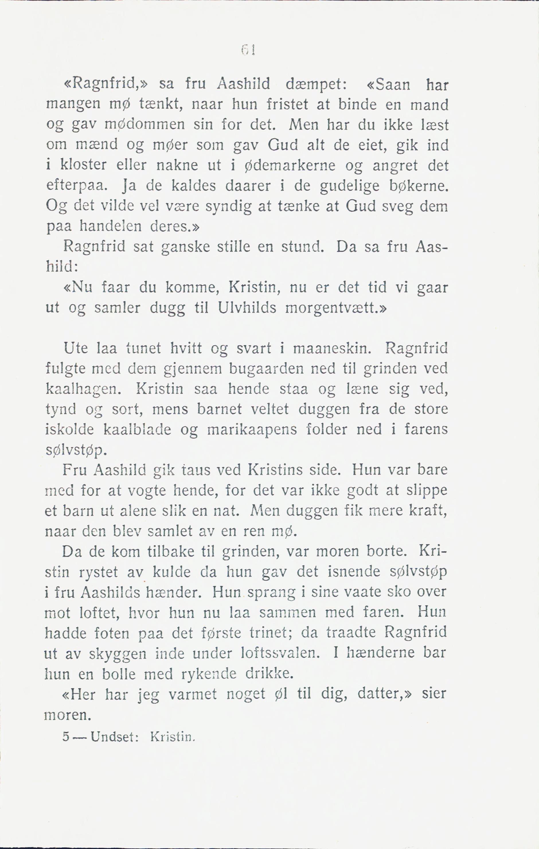 «Ragnfrid,» sa fru Aashild dæmpet: «Saan har