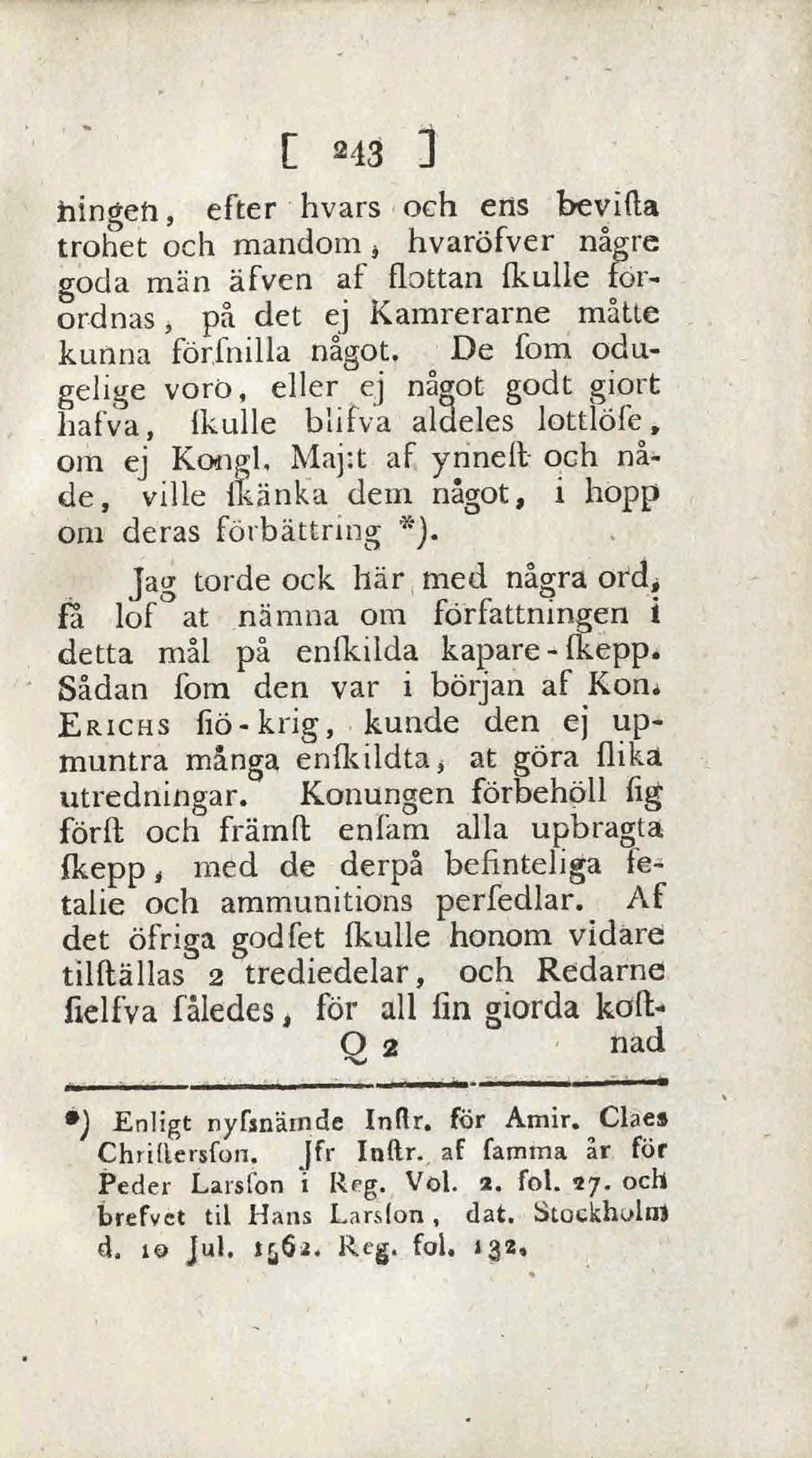 $) Enligt nyfsnämde Infir. för Amir. Claes