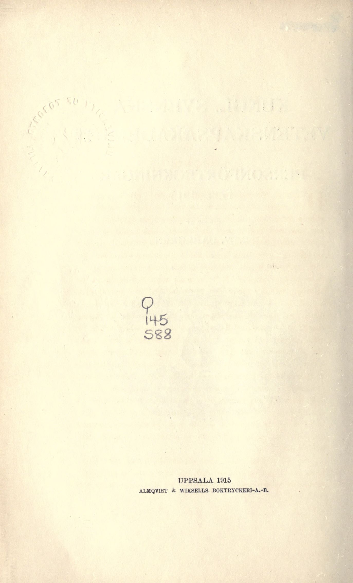 | UPPSALA 1915 ALMKQIST & WIKSELLS BOKTRYCKERI-A.-B. |
