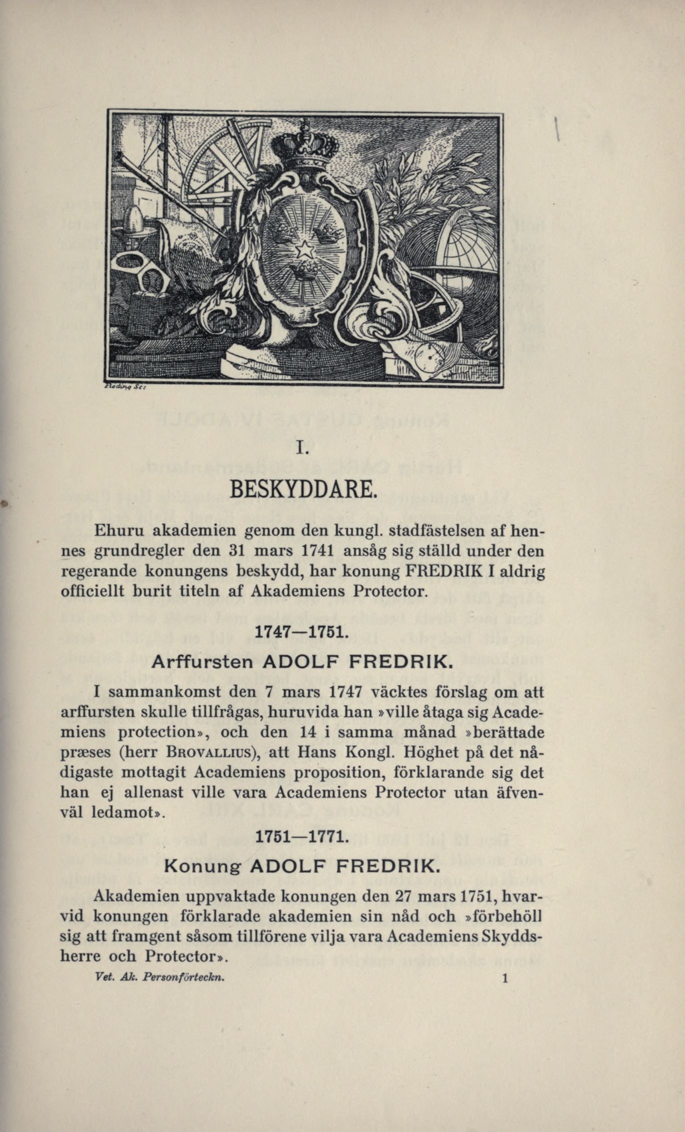 regerande konungens beskydd, har konung FREDRIK I aldrig