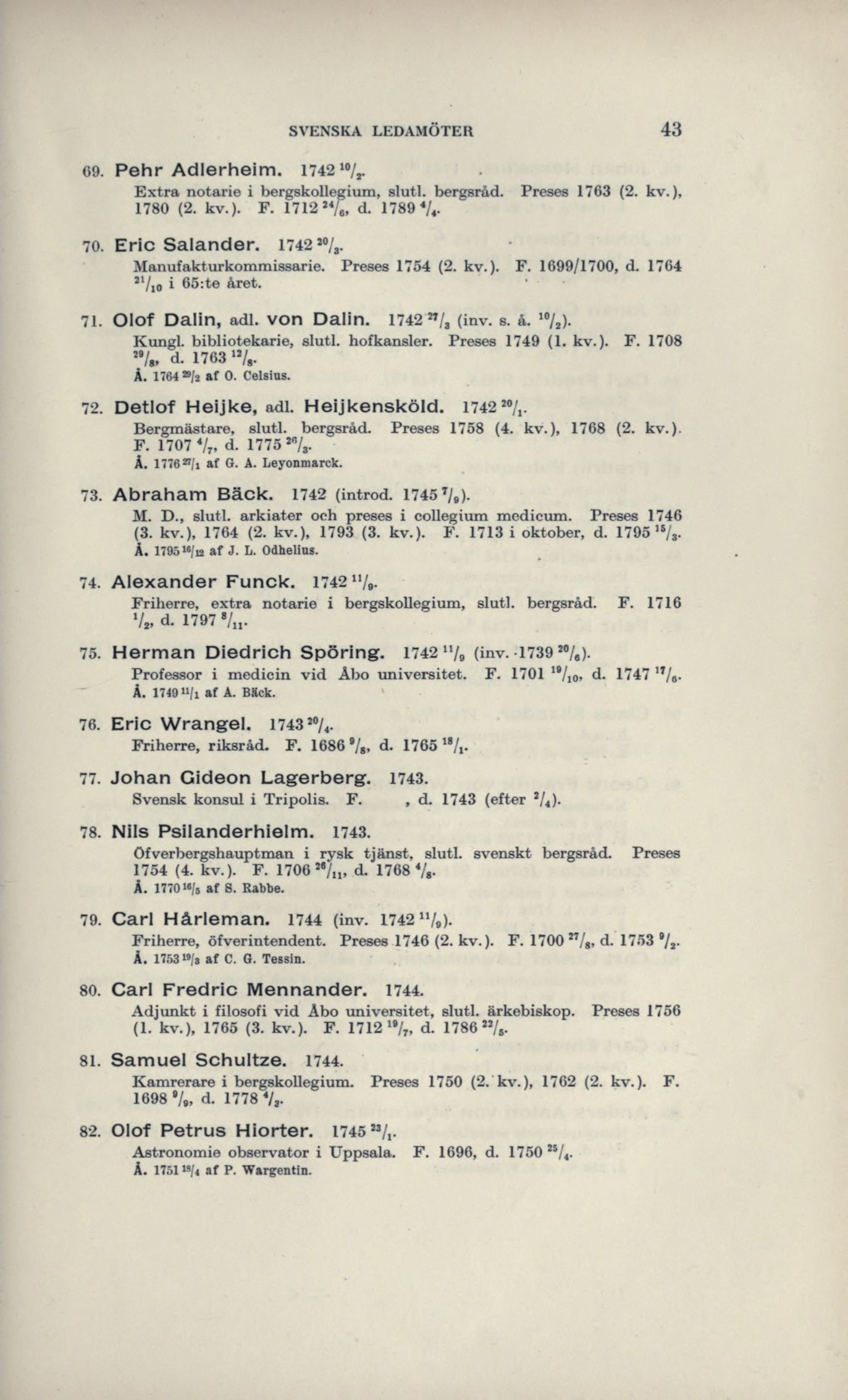 73. Abraham Bäck. 1742 (introd. 1745 */.).