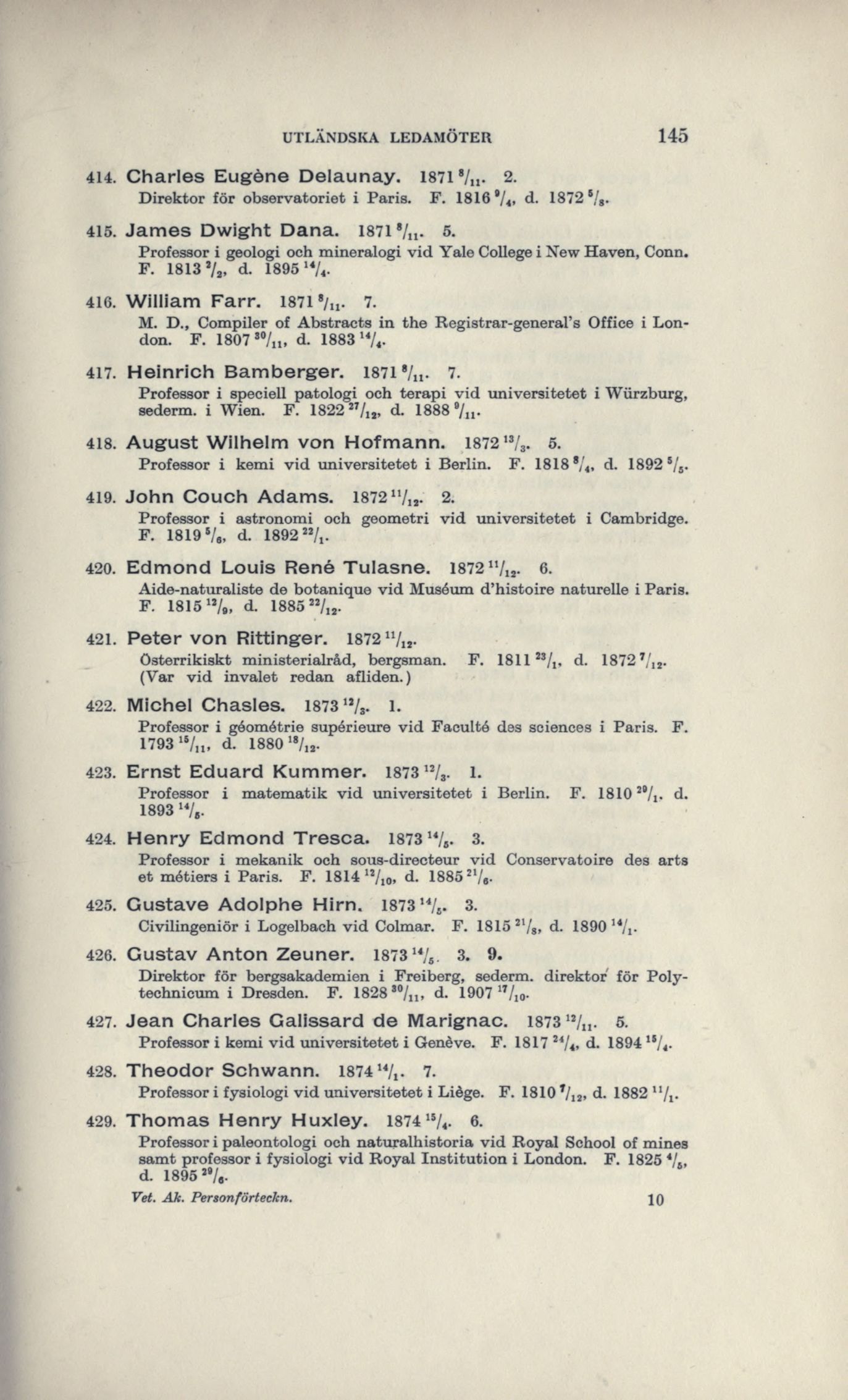 423. Ernst Eduard Kummer. 1873"/,. 1.