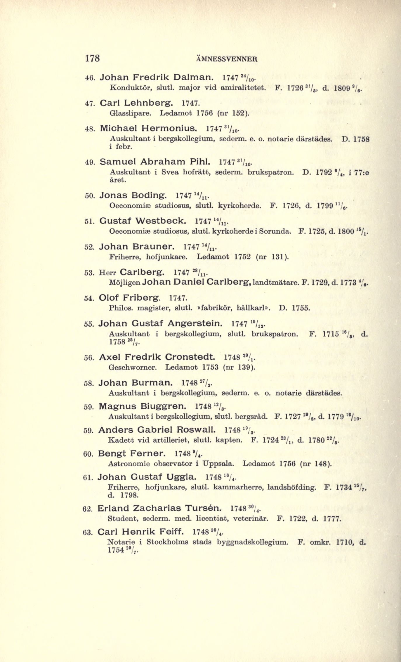 46.	Johan Fredrik Dalman. 1747 "/,0.