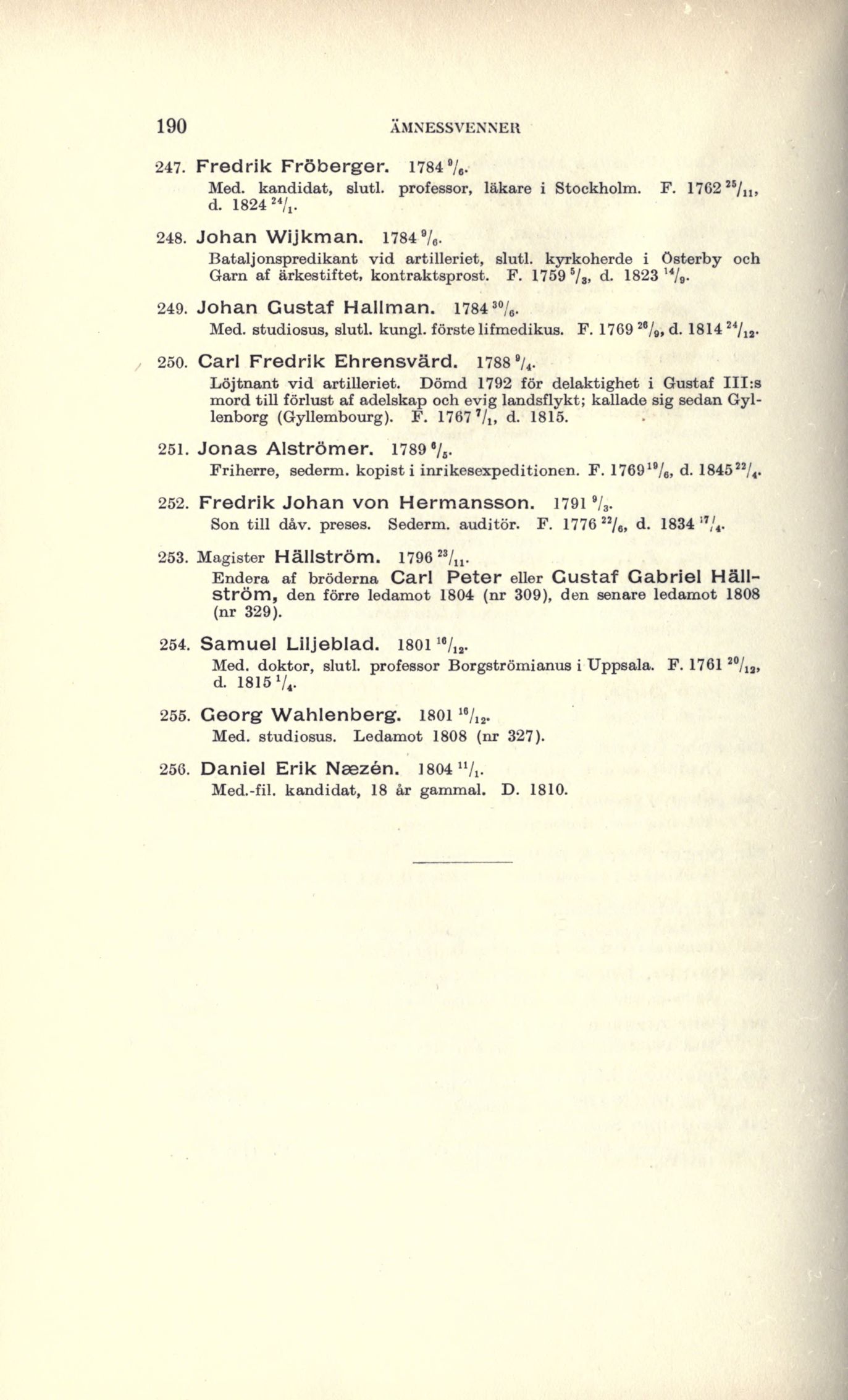 Med. studiosus, slutl. kungl, förste lifmedikus. F. 1769 */«, d. 1814 "/,,