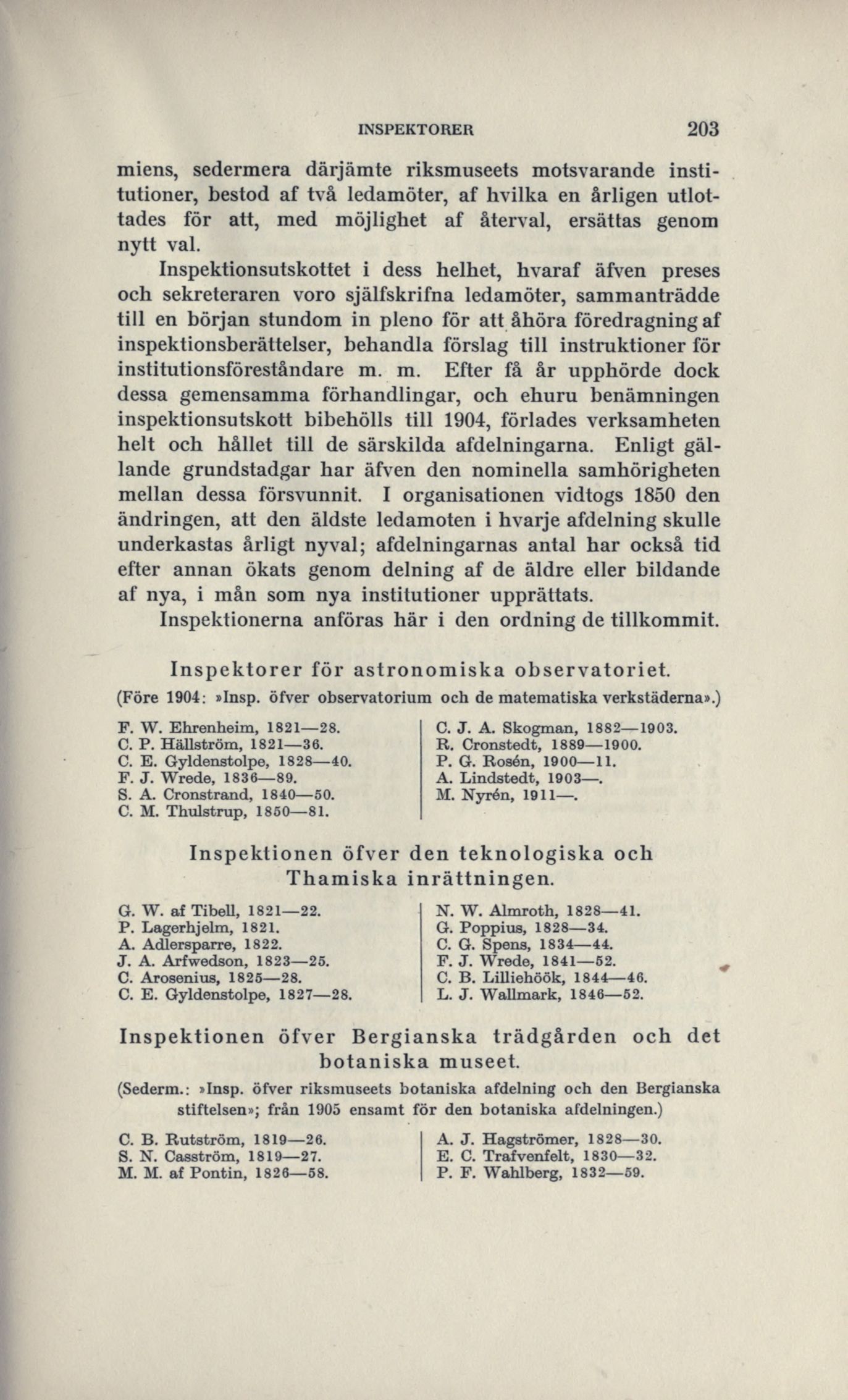 (Före 1904: »Insp. öfver observatorium och de matematiska verkstäderna».)