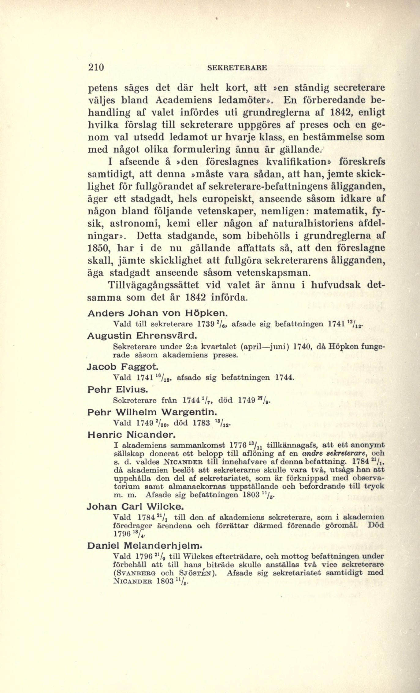 då akademien beslöt att sekreterarne skulle vara två, utsågs han att