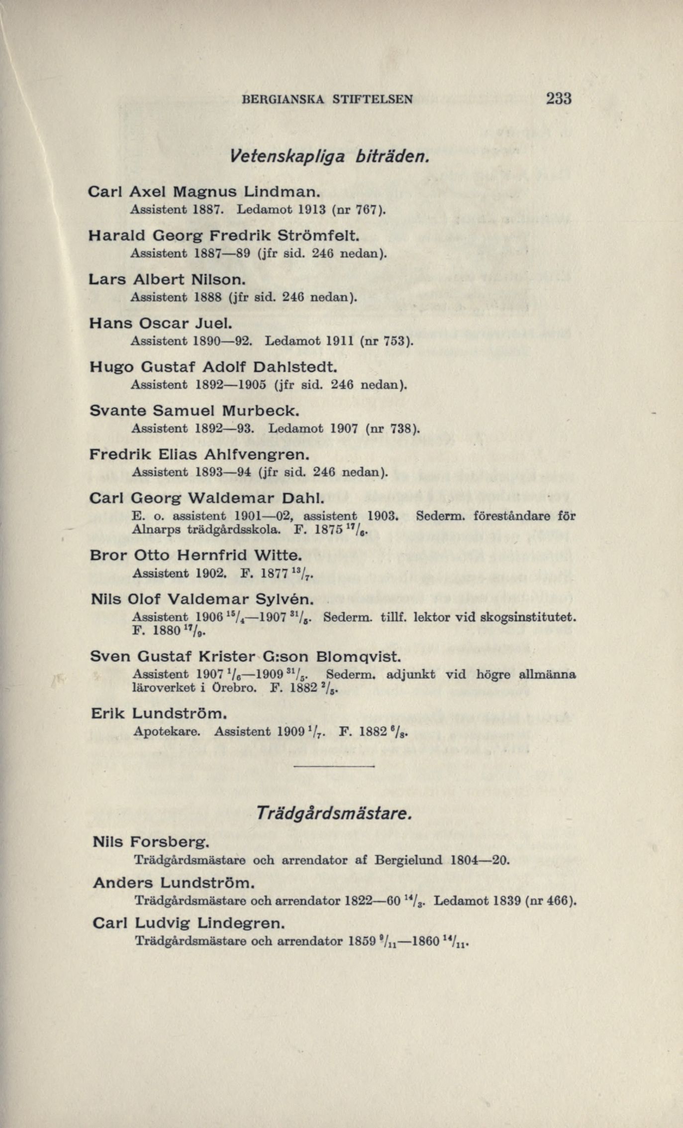 Assistent 1906 "/,—1907 "lt. Sederm. tillf, lektor vid skogsinstitutet.