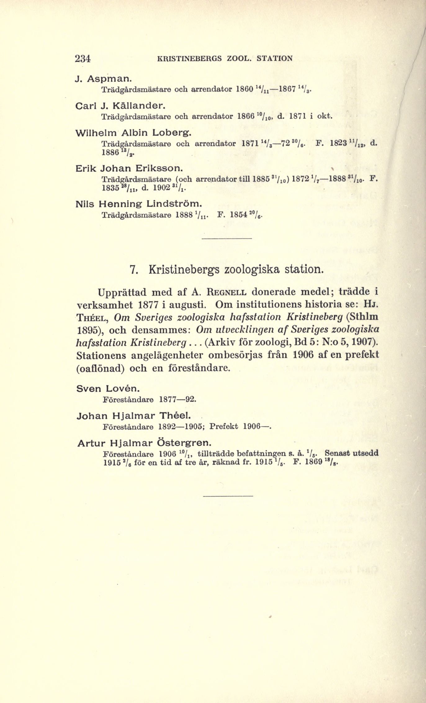 Théel, Om Sveriges zoologiska hafsstalion Kristineberg (Sthlm