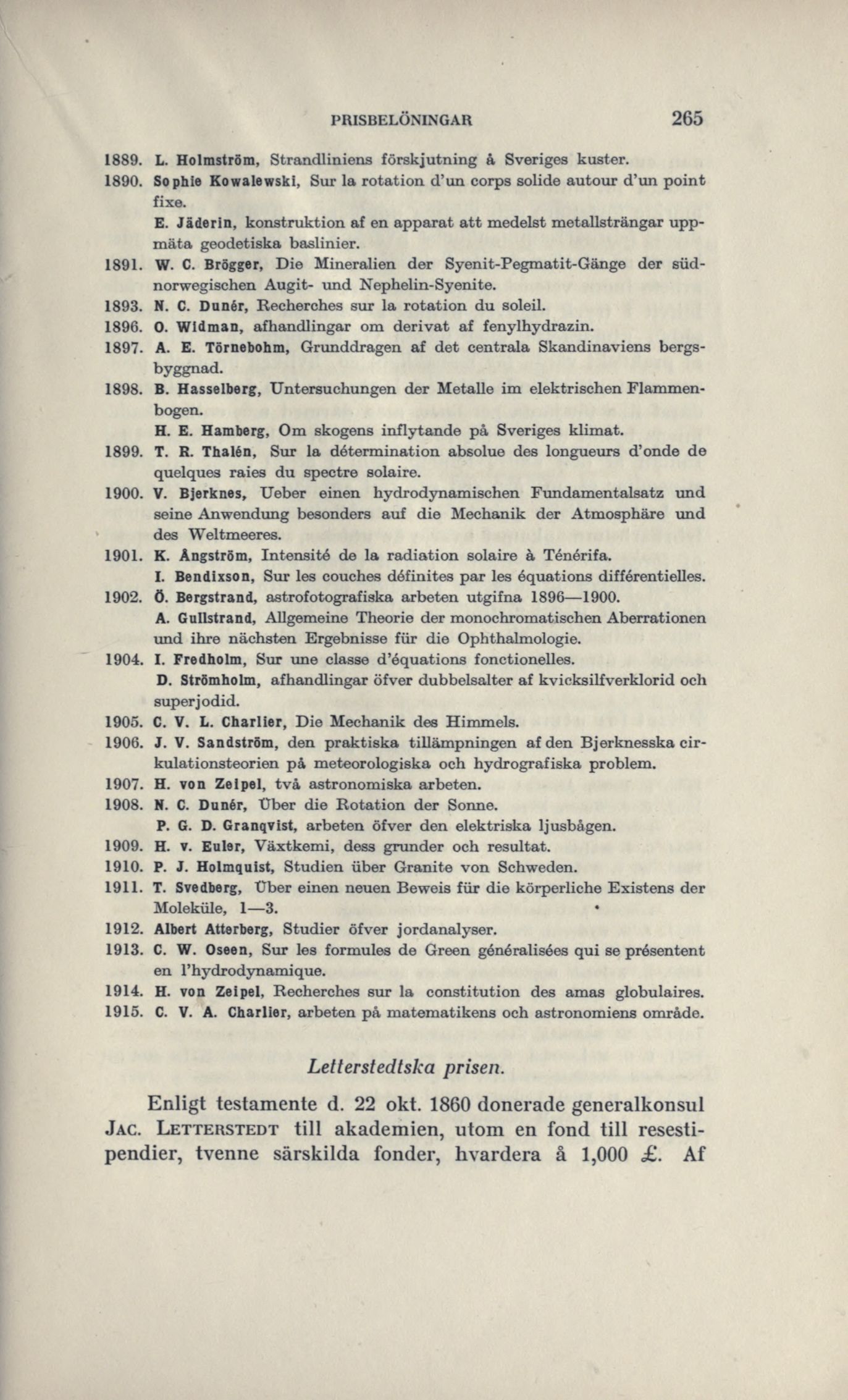 1915.	C. V. A. Charlier, arbeten på matematikens och astronomiens område.