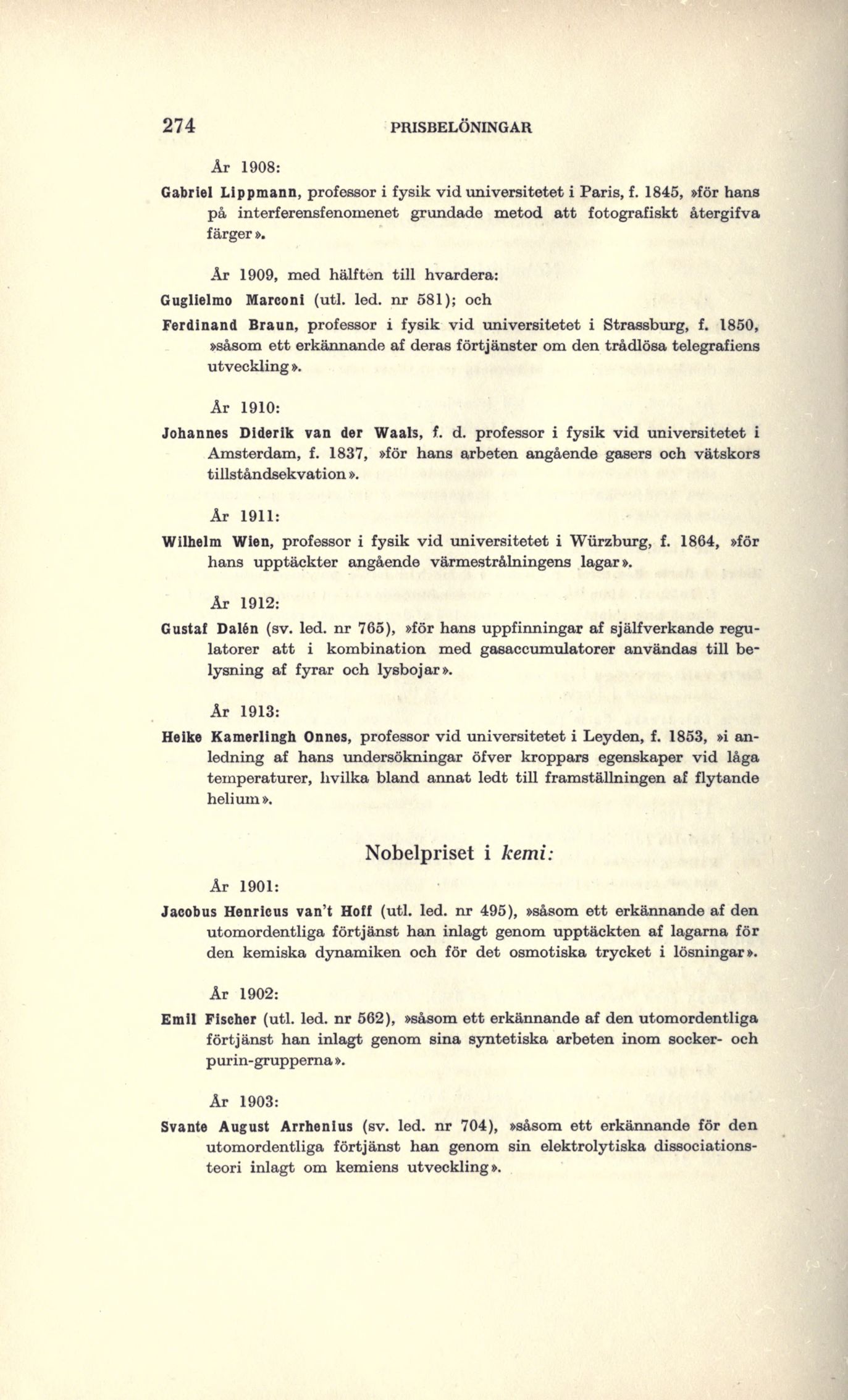 Jacobus Henricus van’t Hoff (uti. led. nr 495), »såsom ett erkännande af den