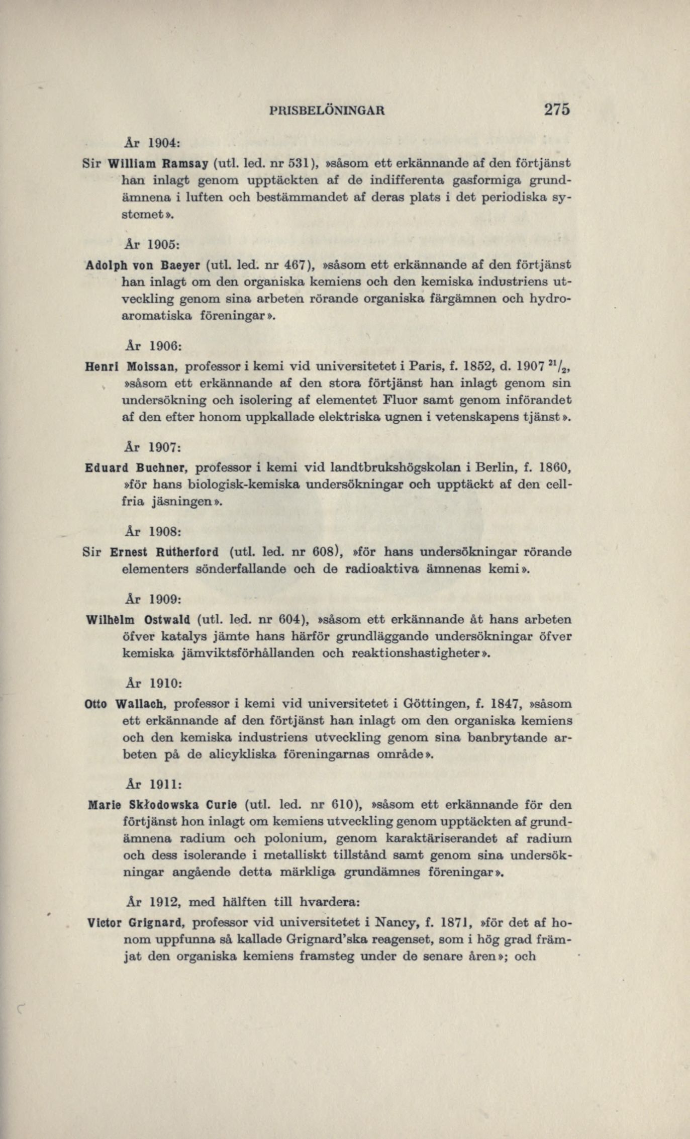 Sir William Ramsay (uti. led. nr 531), »såsom ett erkännande af den förtjänst
