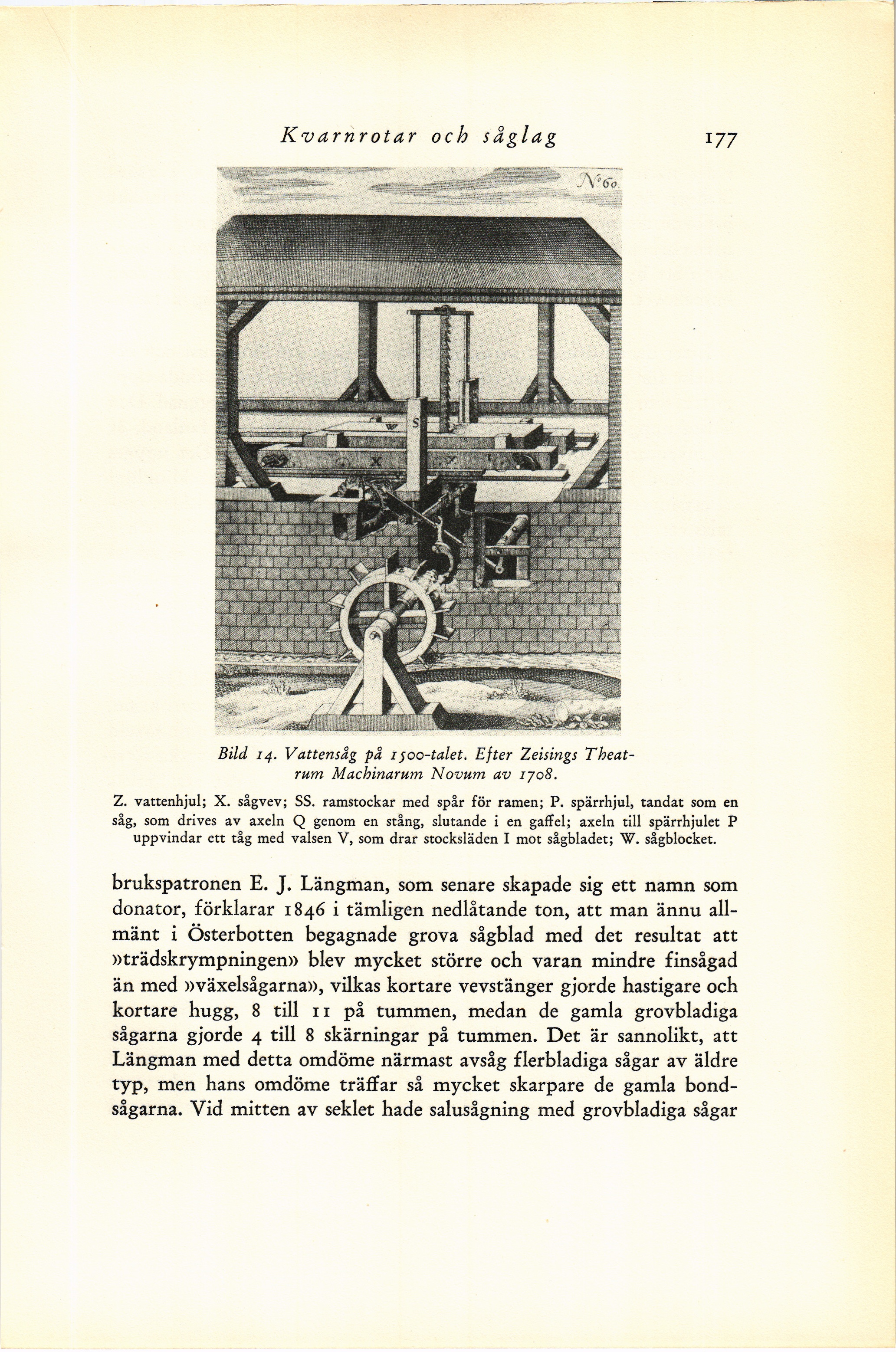 Z. vattenhjul; X. sågvev; SS. ramstockar med spår för ramen; P. spärrhjul, tandat som en