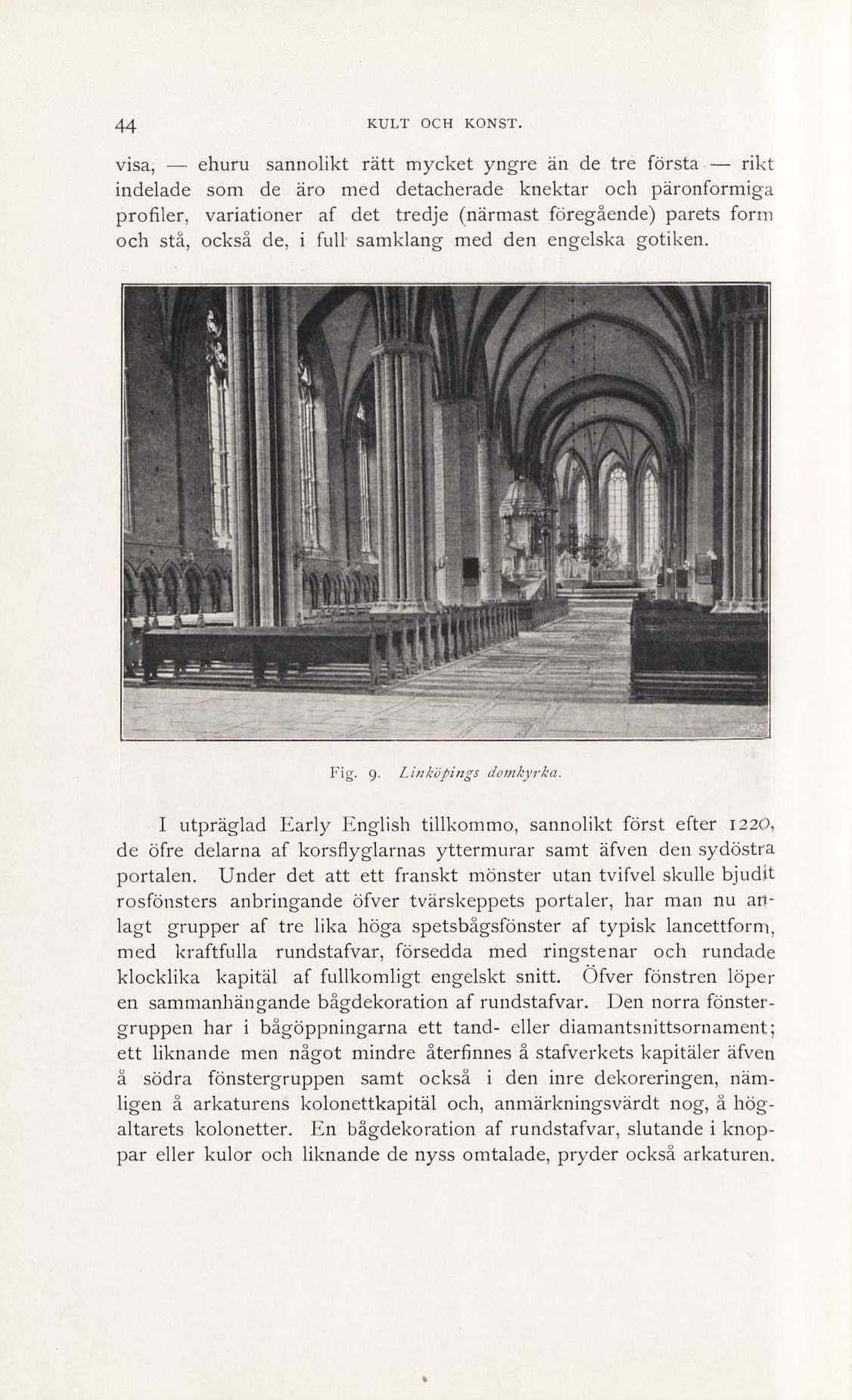 anlagt grupper af tre lika höga spetsbågsfönster af typisk lancettforni,