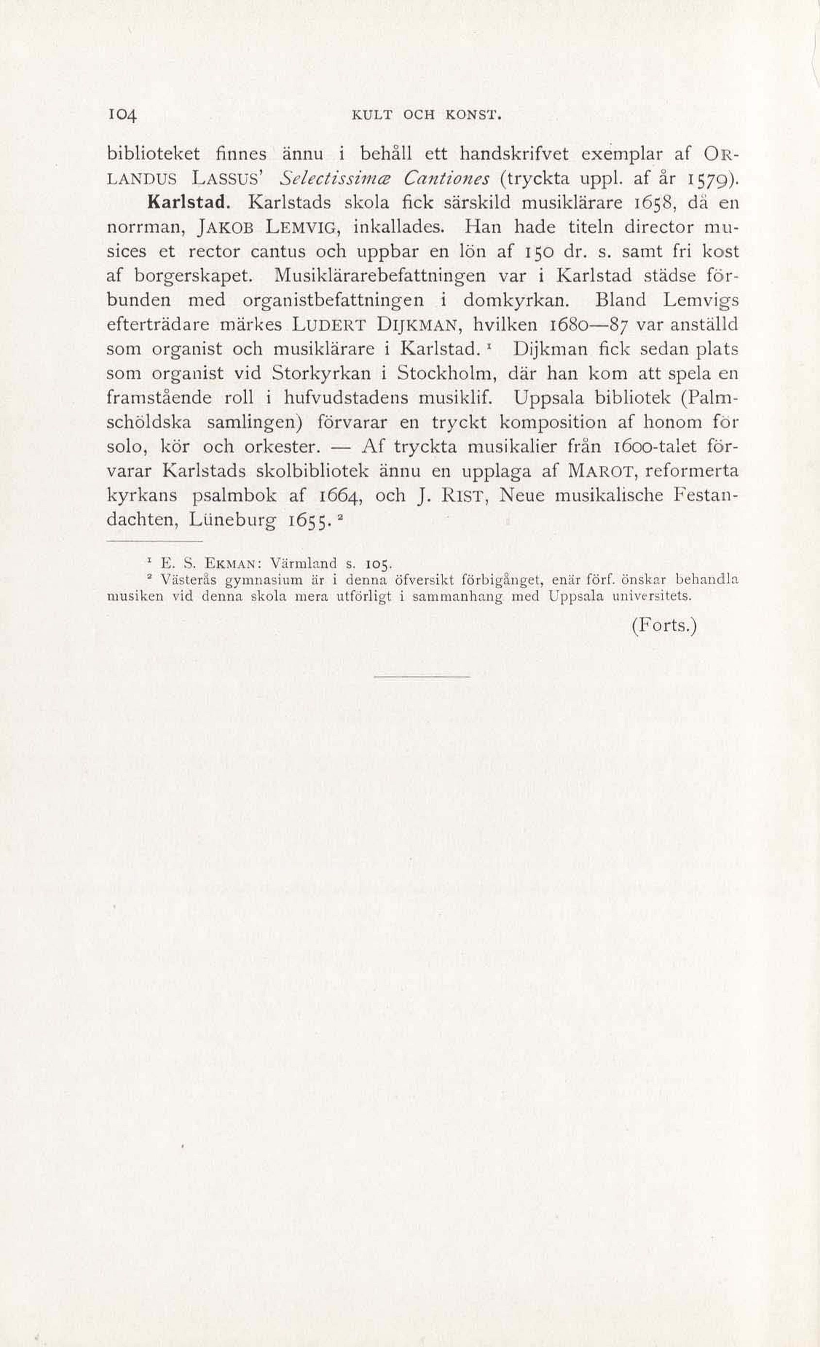 som organist och musiklärare i Karlstad. 1 Dijkman fick sedan plats