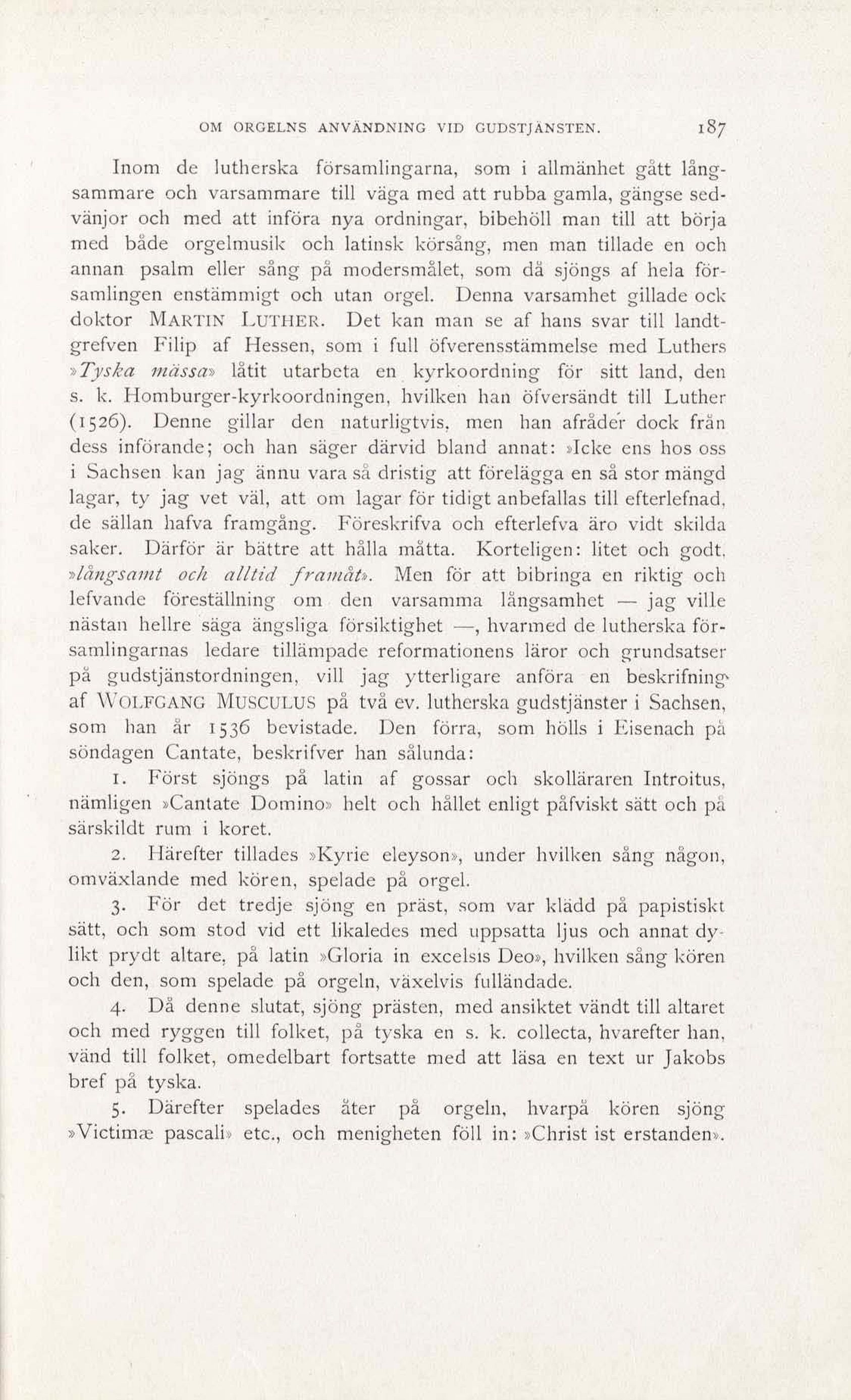 OM ORGELNS ANVÄNDNING VID GUDSTJÄNSTEN. I8S