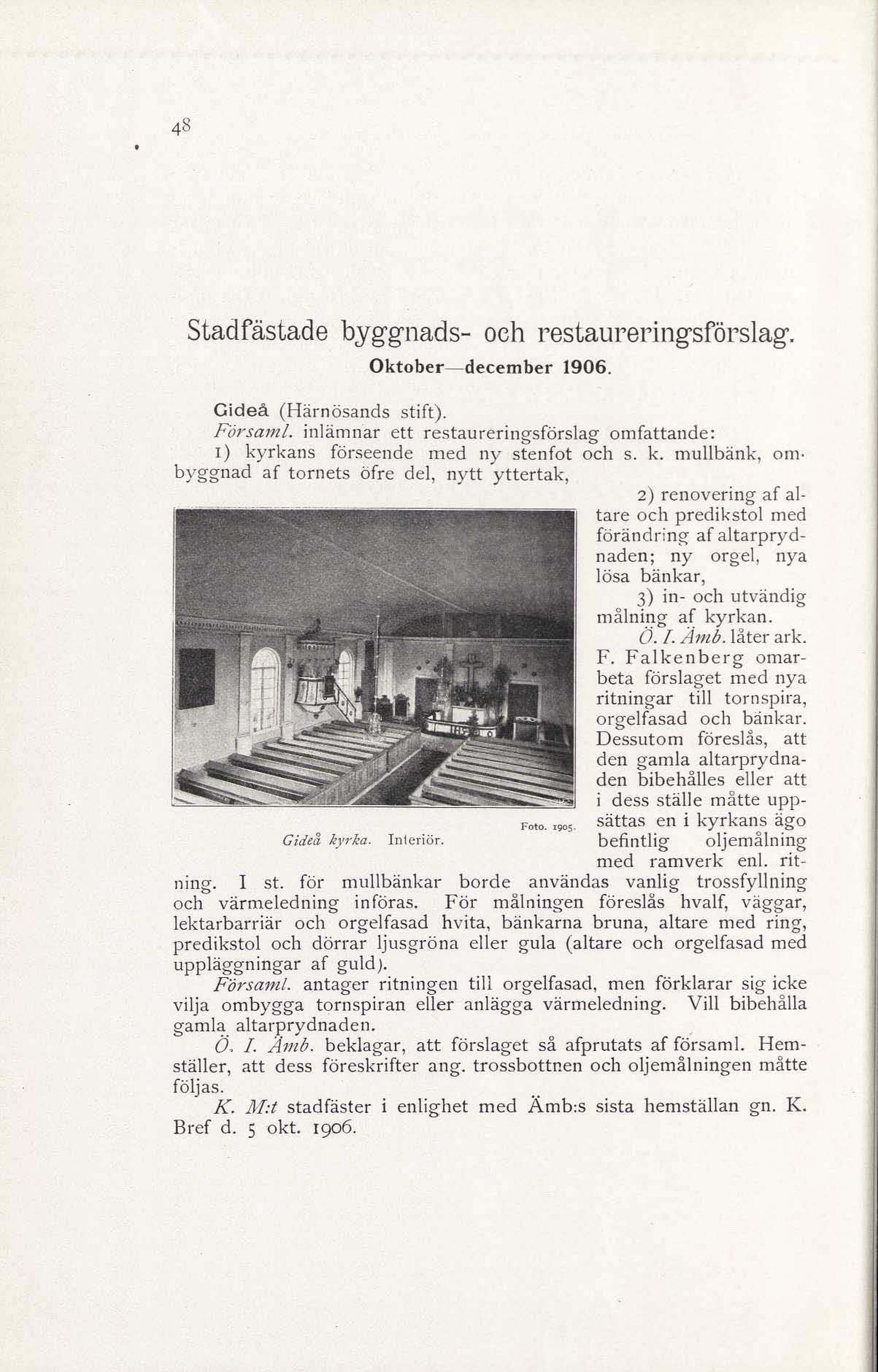 och värmeledning införas. För målningen föreslås hvalf, väggar,