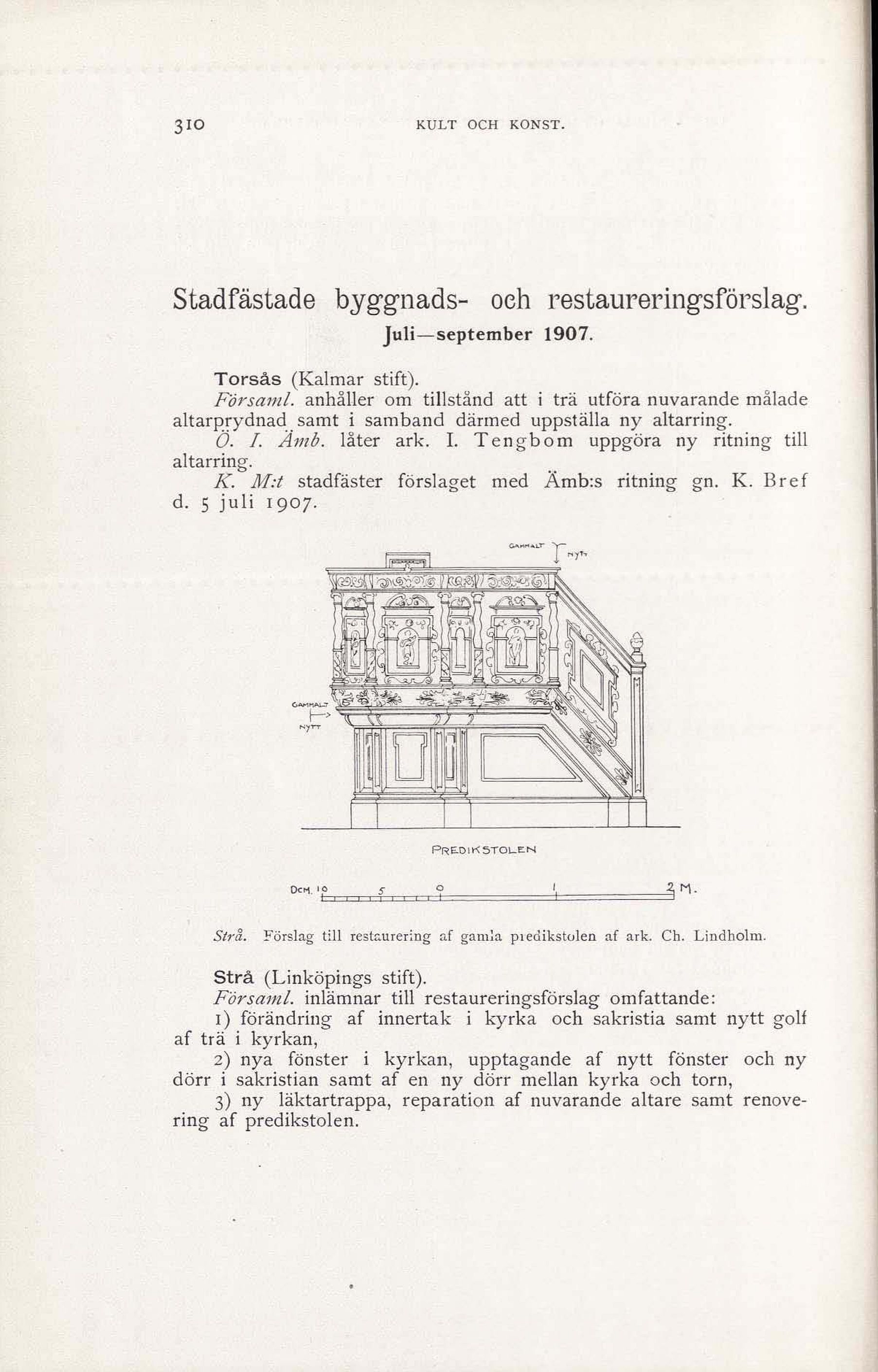 Strå. Förslag till restaurering af gamla piedikstolen af ark. Ch. Lindholm.
