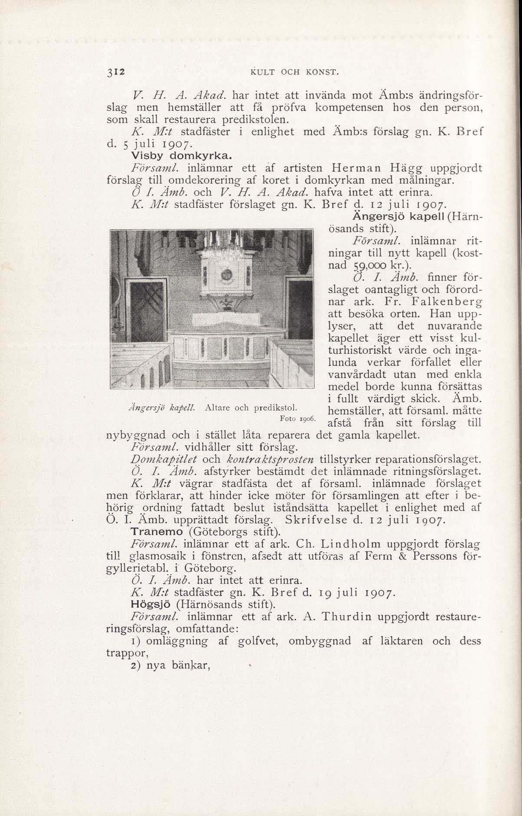 K. M:t stadfäster förslaget gn. K. Bref d. 12 juli 1907.