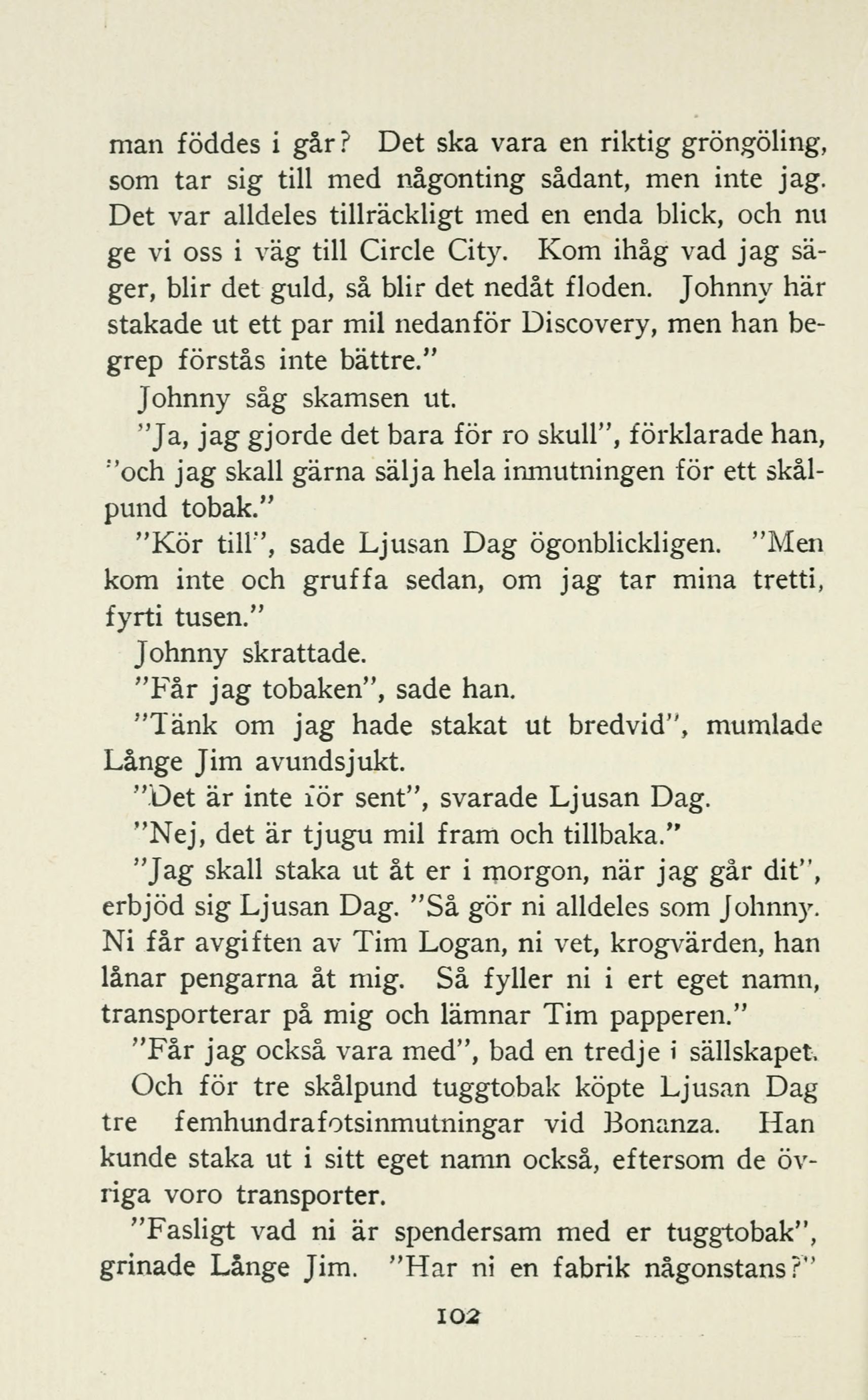 Och för tre skålpund tuggtobak köpte Ljusan Dag