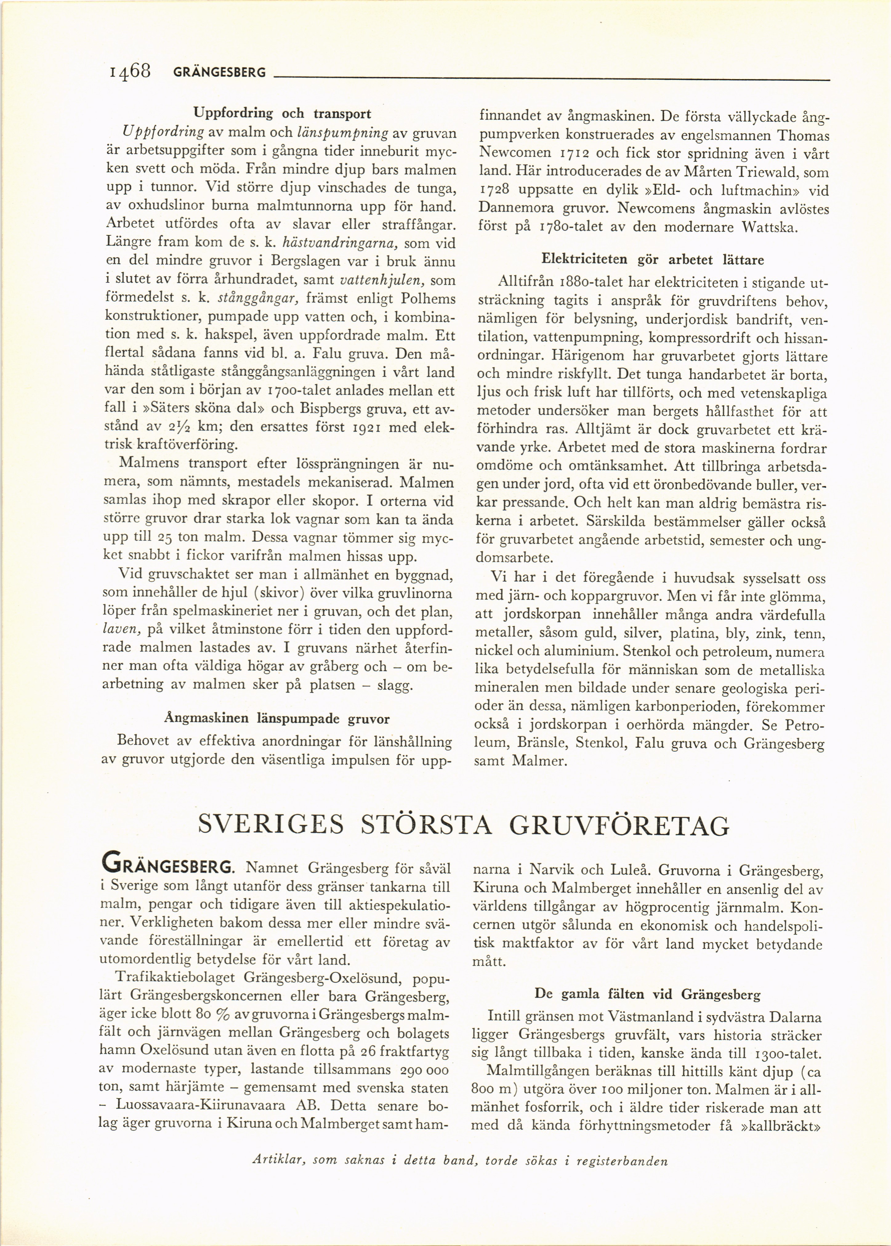 Full resolution (JPEG) - On this page / på denna sida - Gruvbrytning — hur underjordens skatter bärgas - Uppfordring och transport - Ångmasknien länspumpade gruvor - Elektriciteten gör arbetet lättare - Grängesberg — Sveriges största gruvföretag - De gamla fälten vid Grängesberg