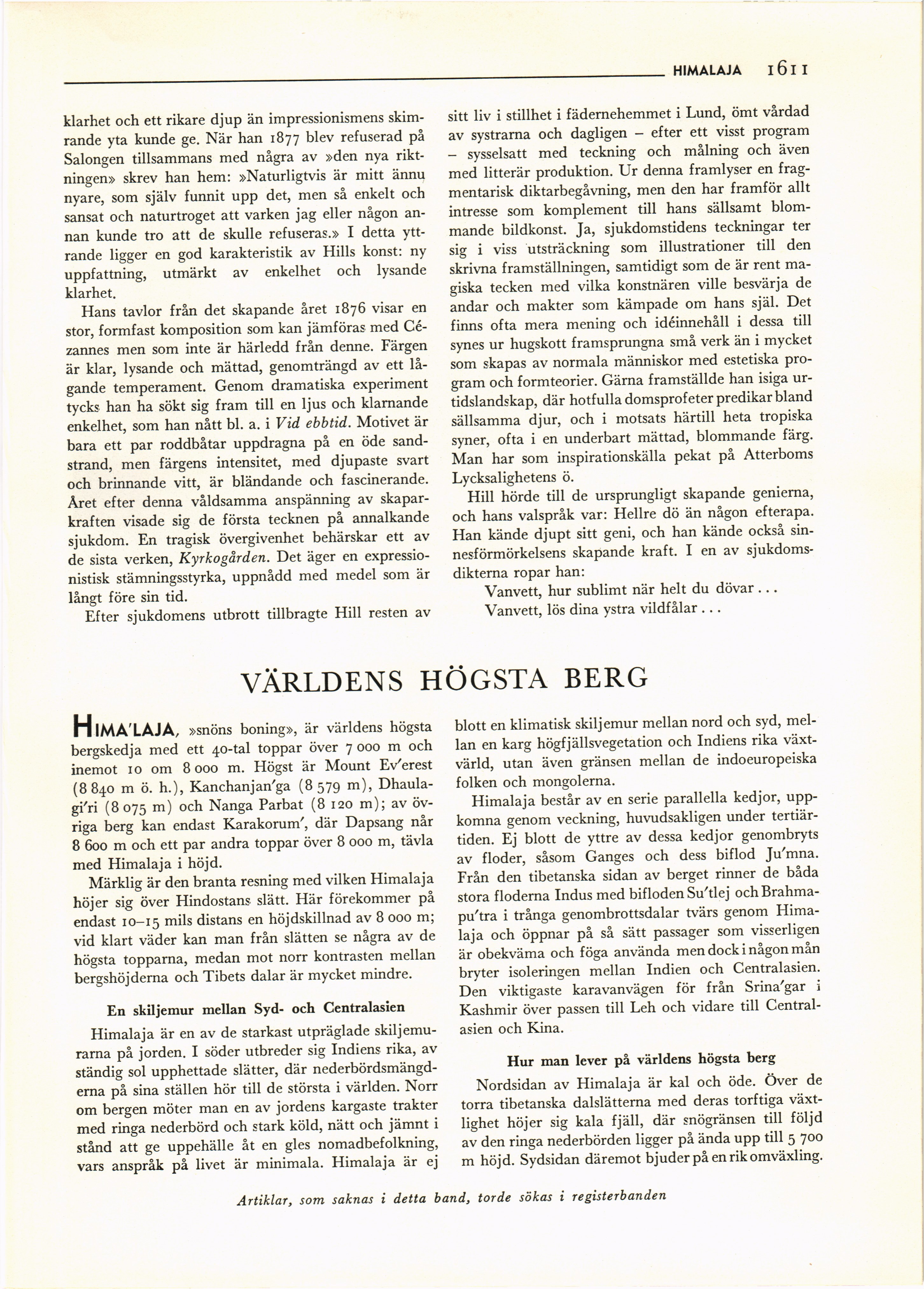 Artiklar, som saknas i detta band, torde sökas i registerbanden
